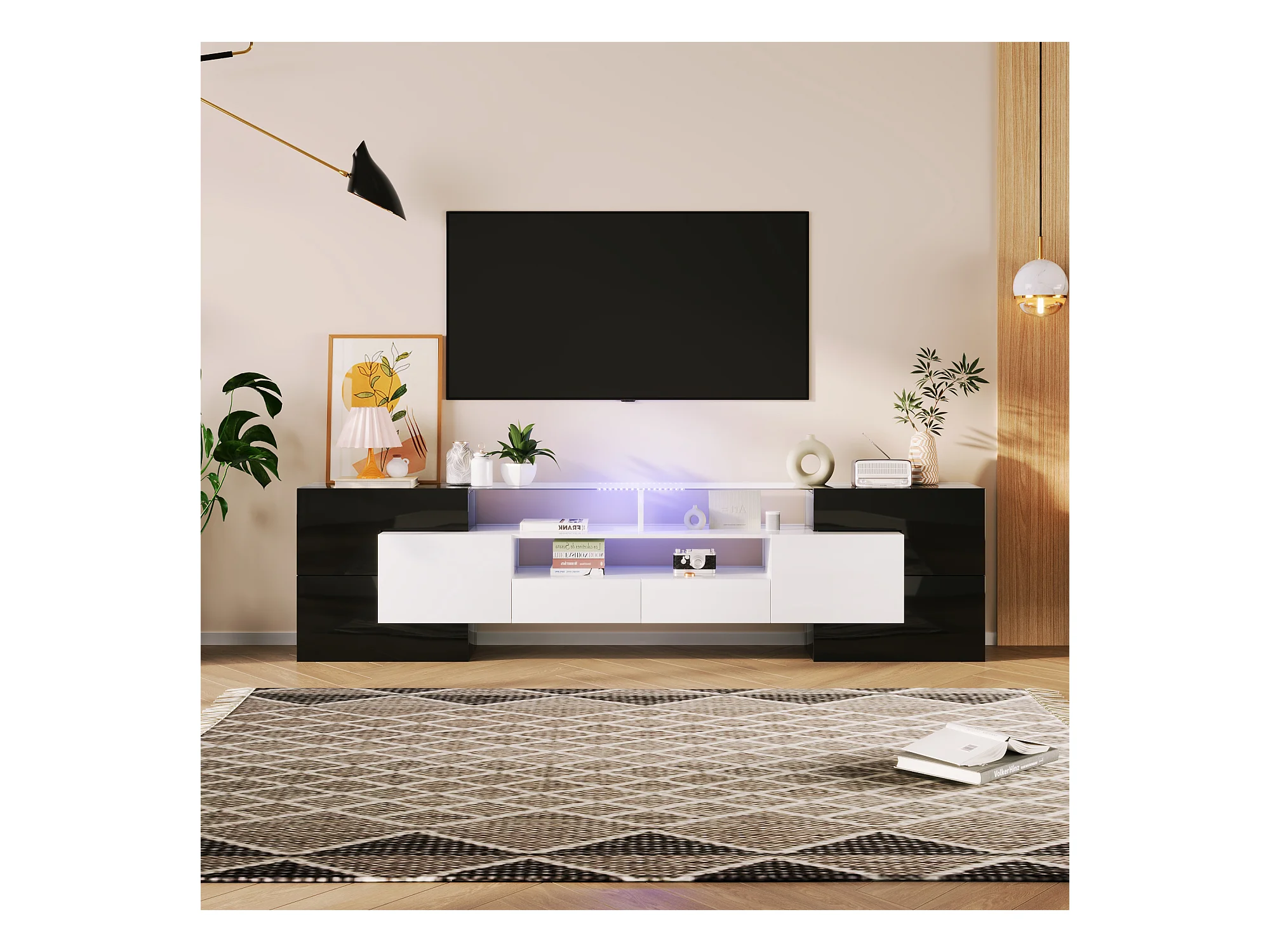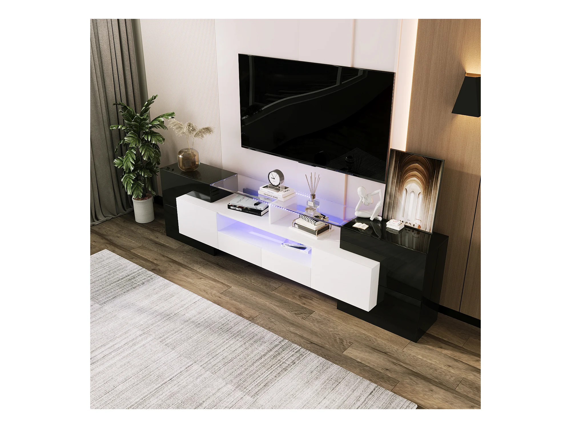 Meuble TV avec LED, design moderne, haute brillance, MDF, noir et blanc (200x35x60cm)