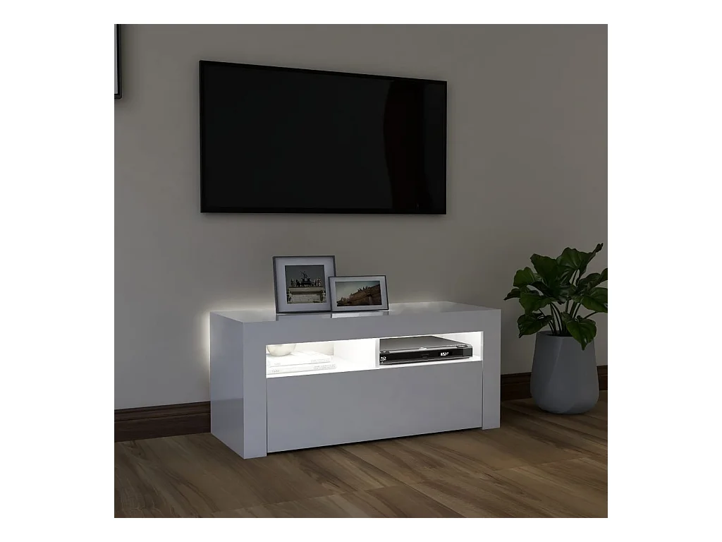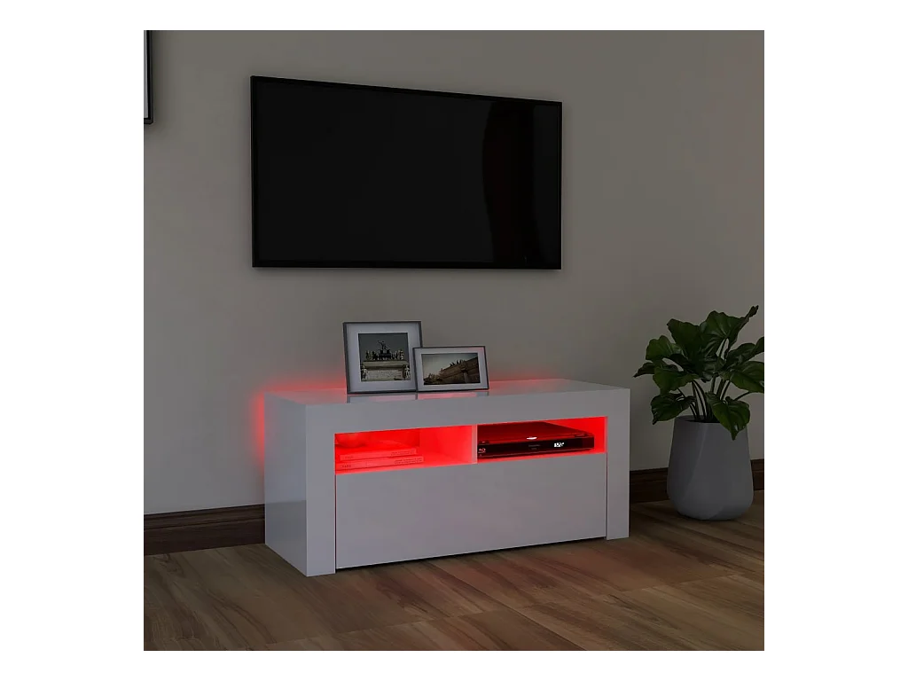 Meuble TV avec lumières LED blanc brillant 90x35x40 cm