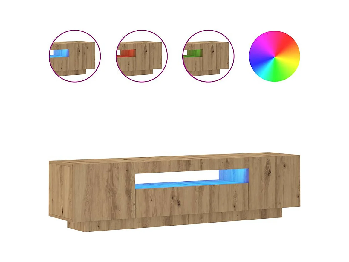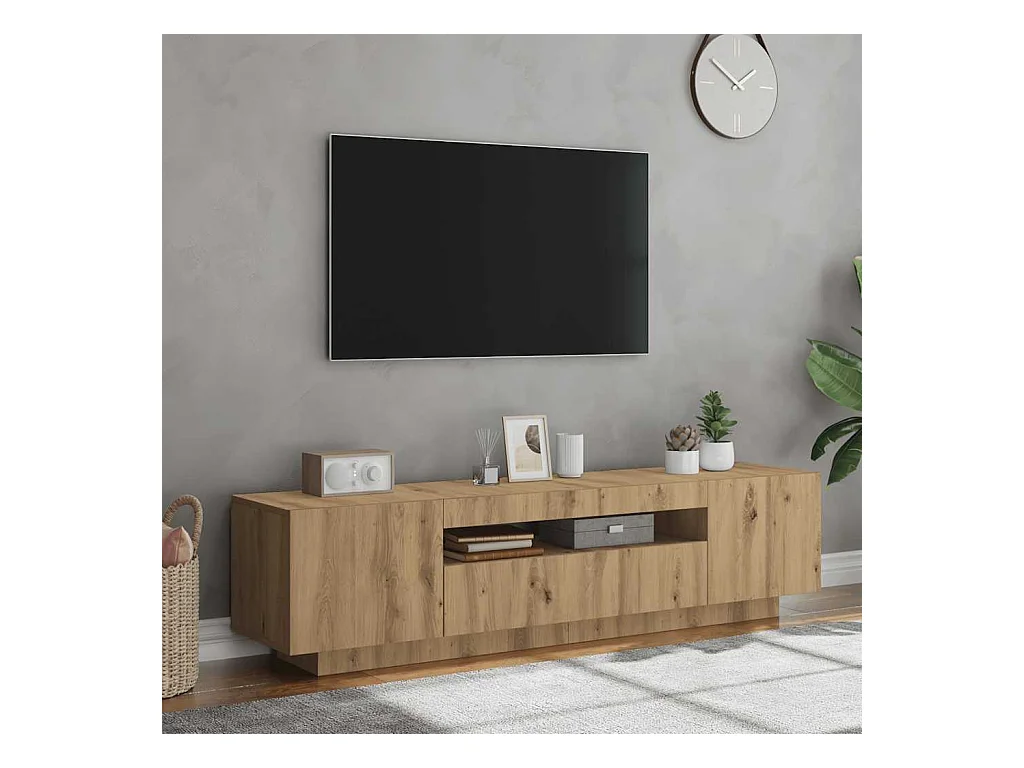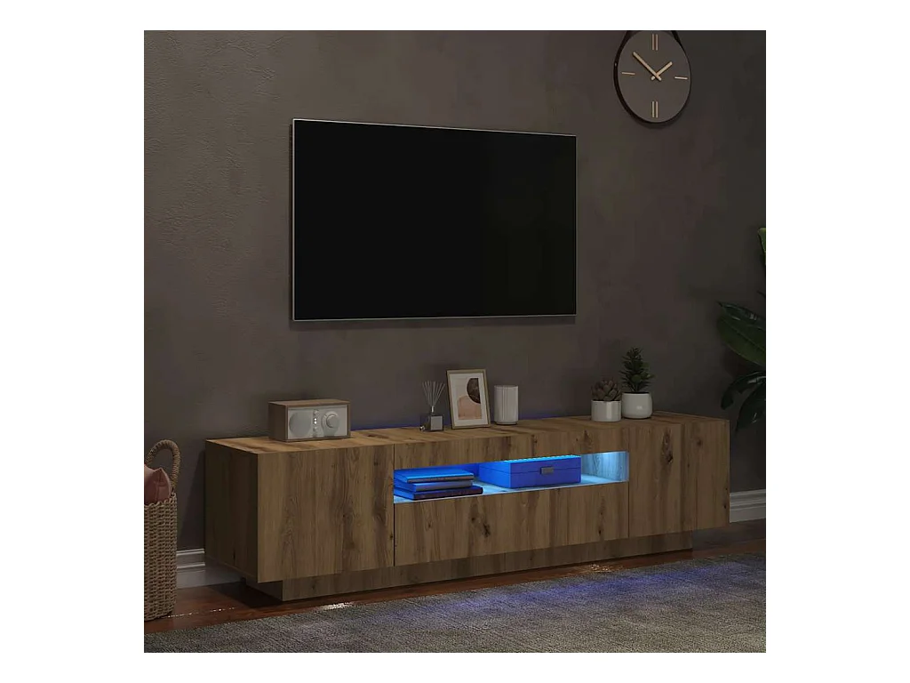 Meuble TV avec lumières LED chêne artisanal bois d'ingénierie