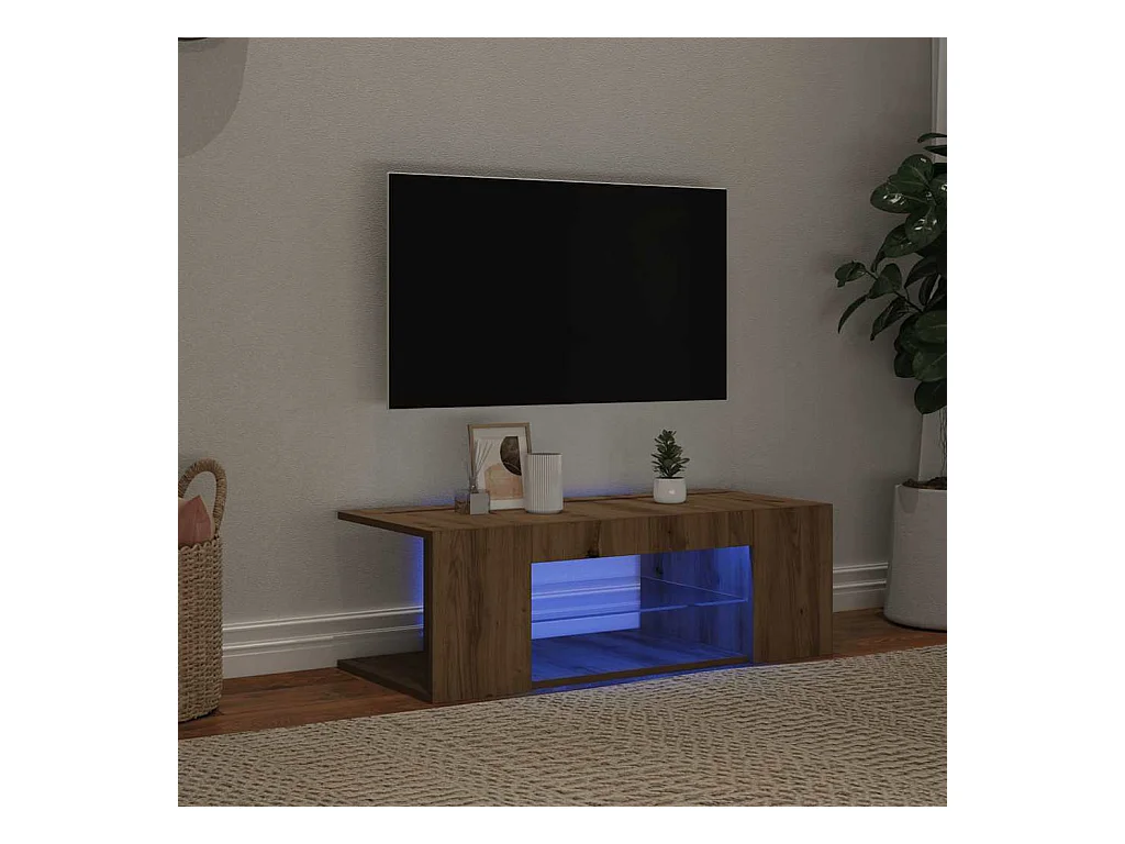 Meuble TV avec lumières LED Chêne fumé 90x39x30 cm