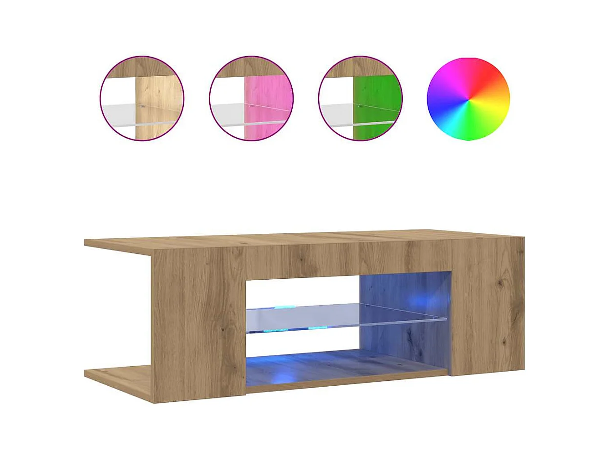 Meuble TV avec lumières LED chêne artisanal bois d'ingénierie