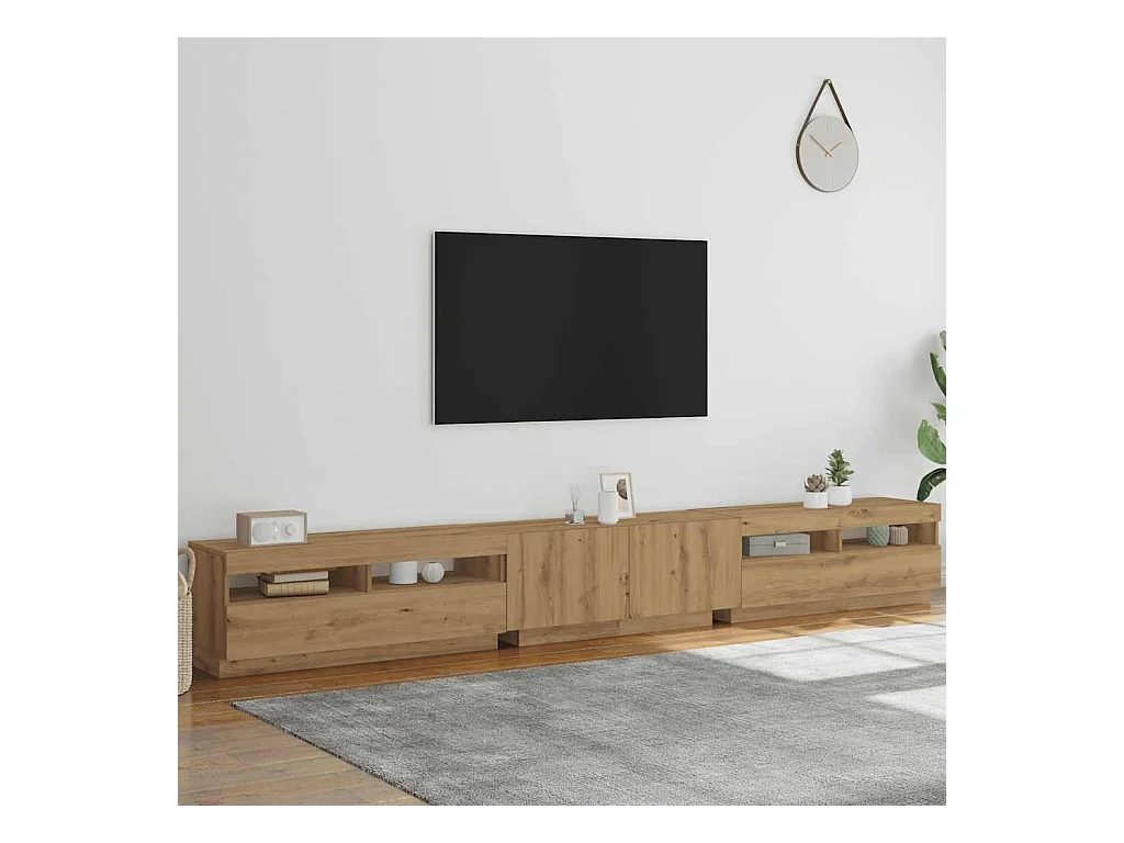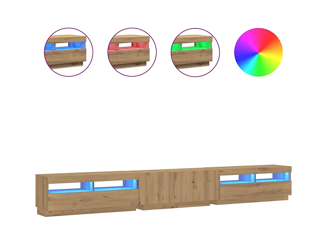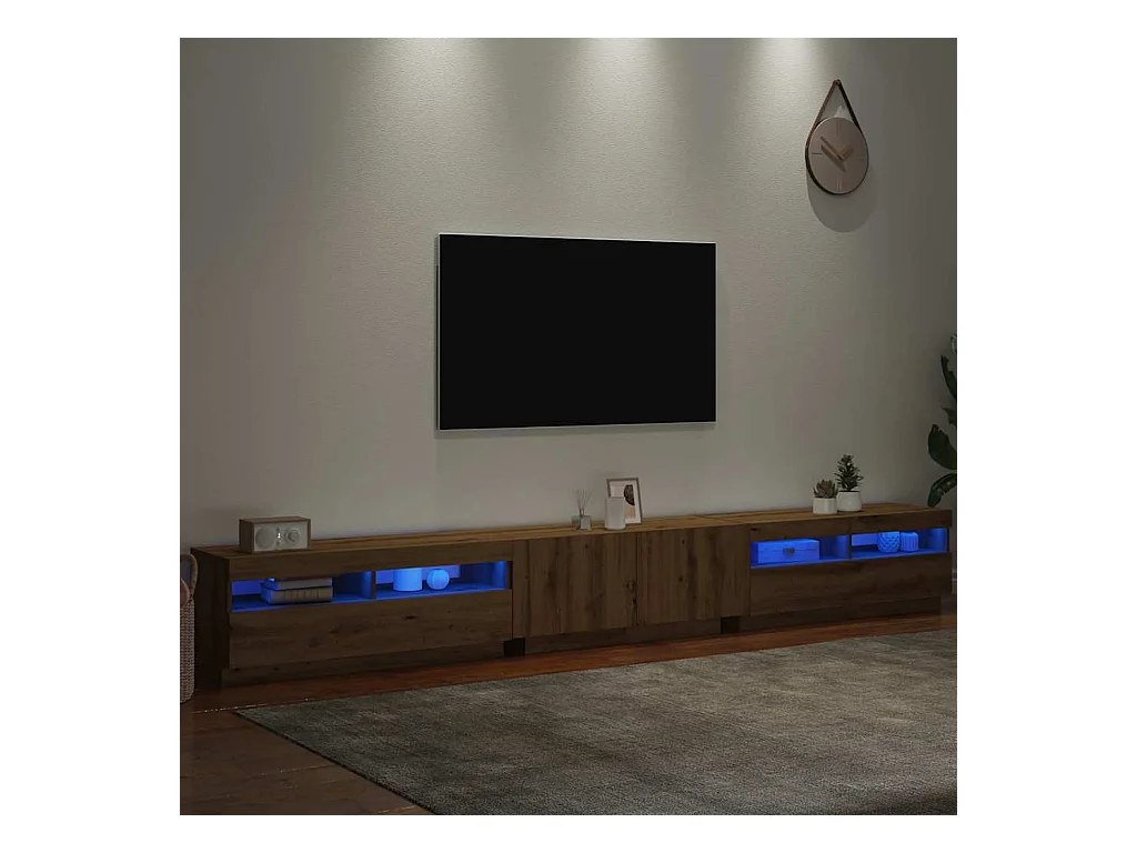 Meuble TV avec lumières LED chêne artisanal bois d'ingénierie