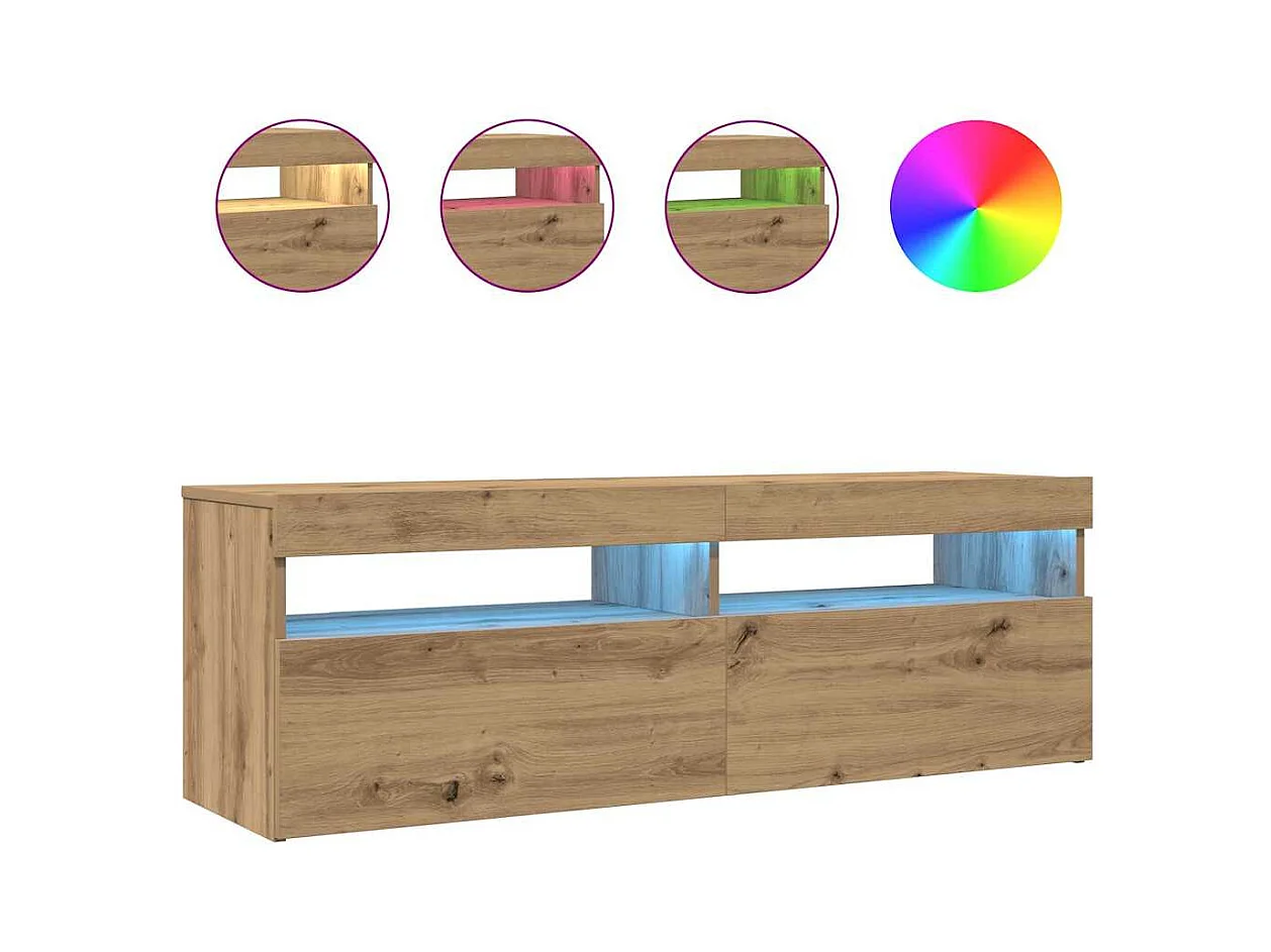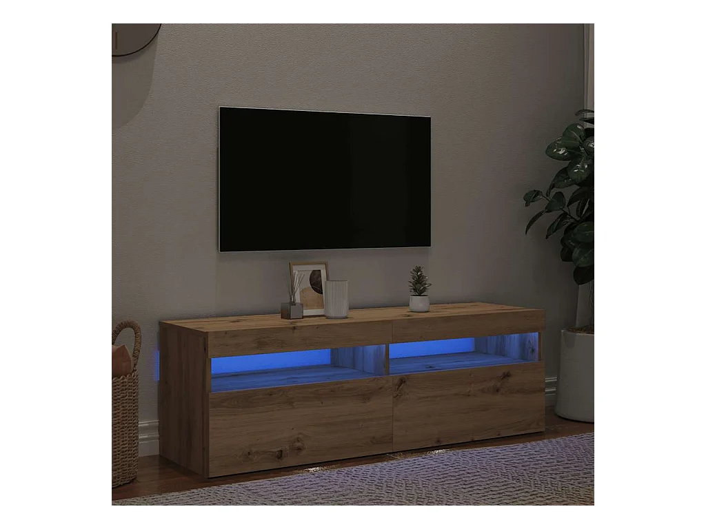 Meuble TV avec lumières LED chêne artisanal bois d'ingénierie