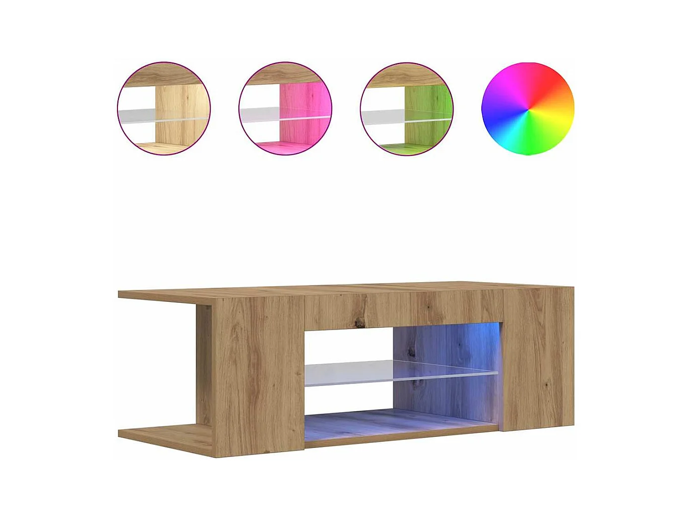 Meuble TV avec lumières LED chêne artisanal bois d'ingénierie