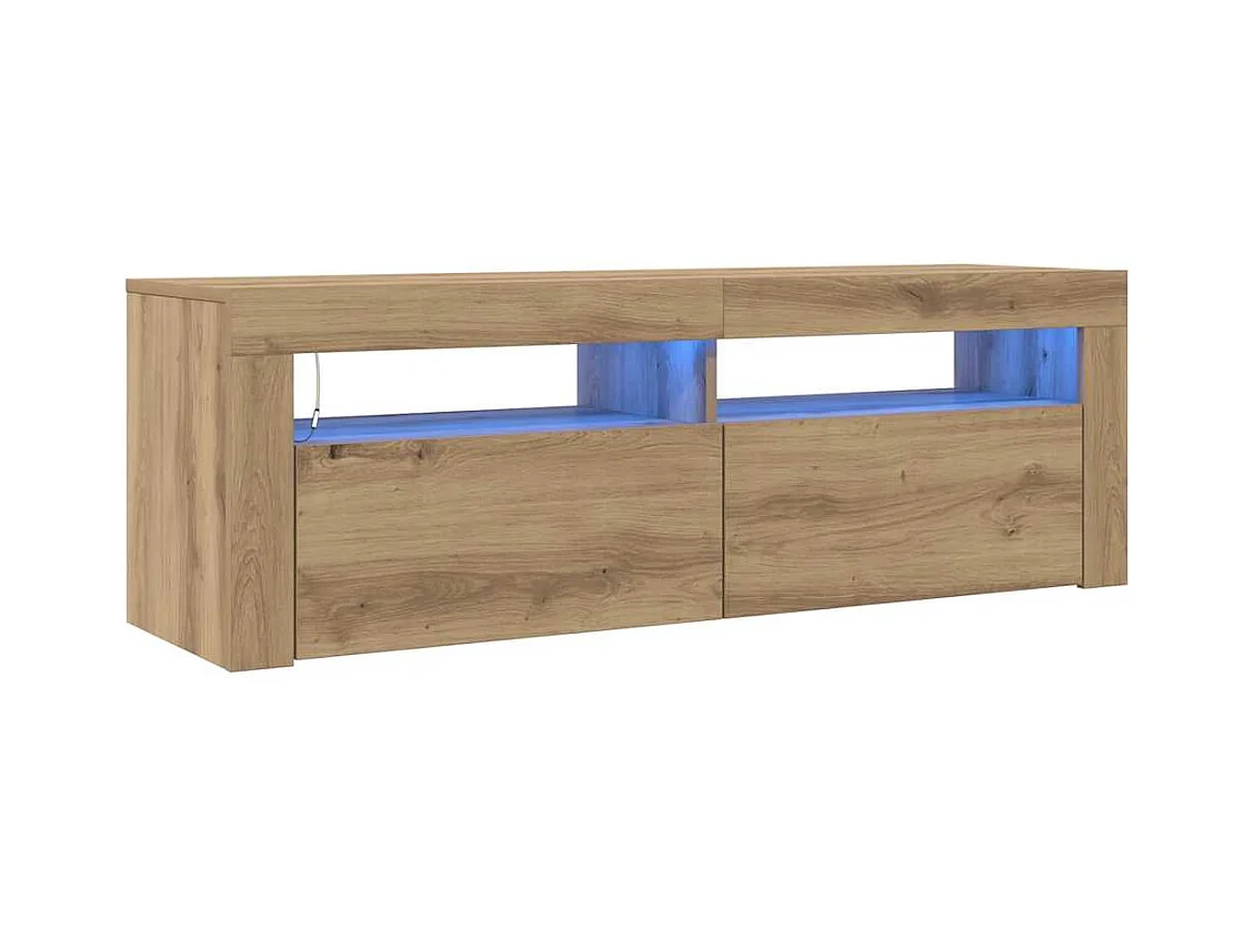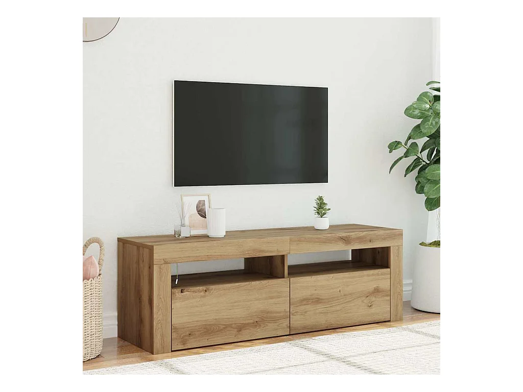 Meuble TV avec lumières LED chêne artisanal bois d'ingénierie