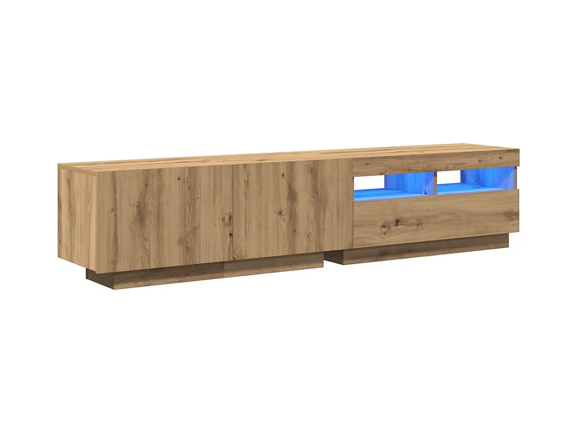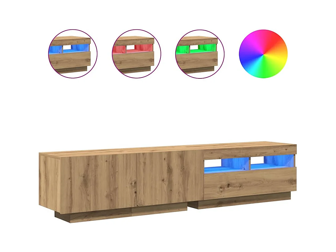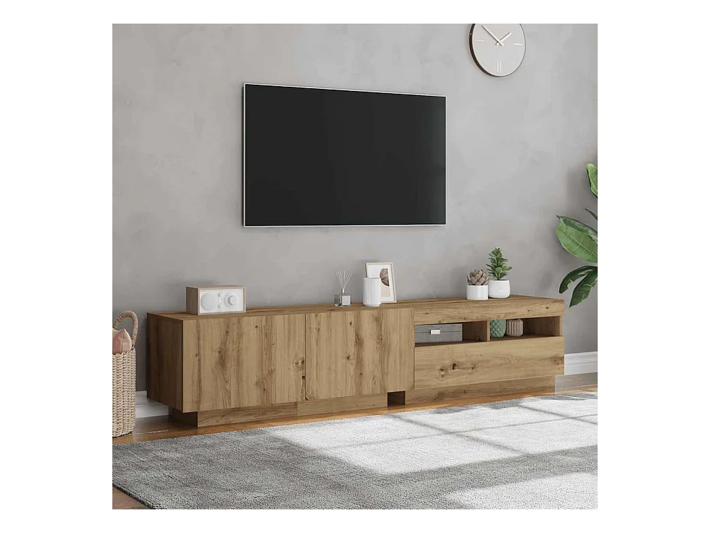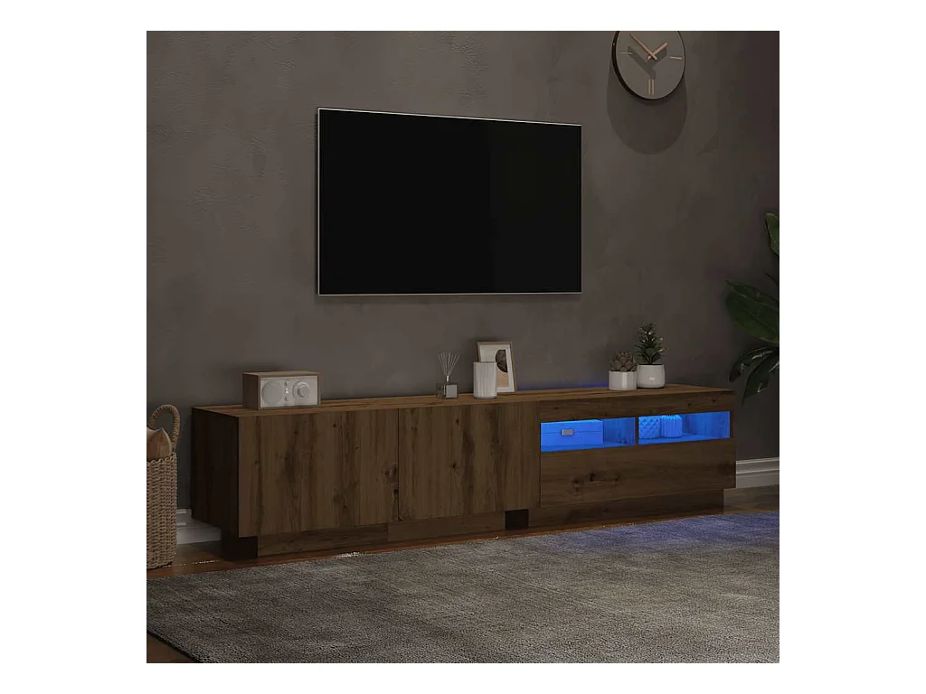 Meuble TV avec lumières LED chêne artisanal bois d'ingénierie