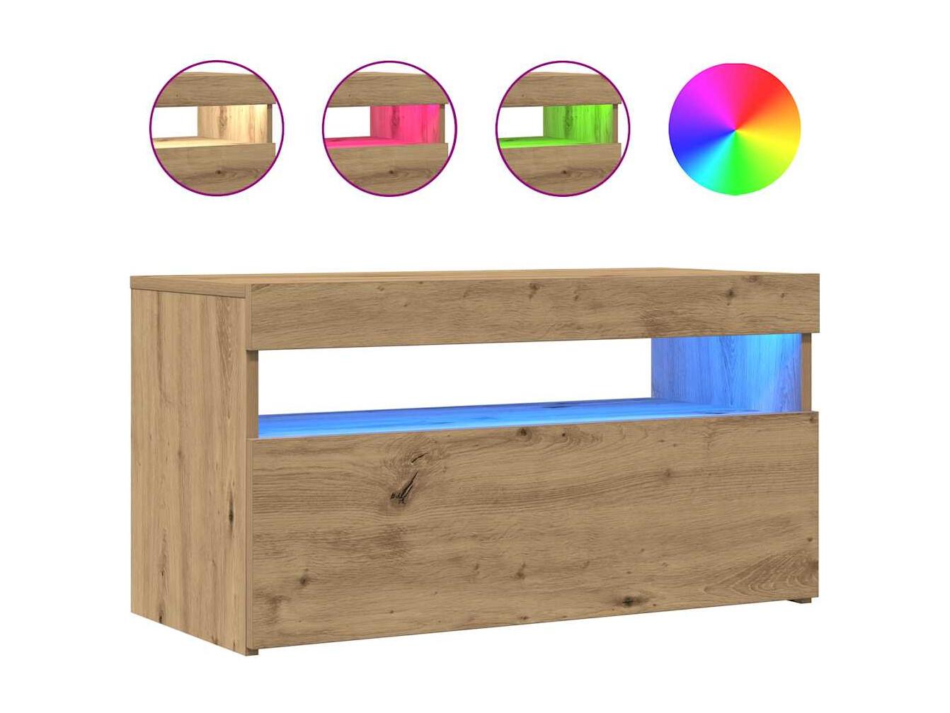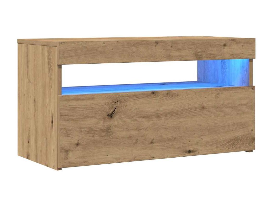 Meuble TV avec lumières LED chêne artisanal bois d'ingénierie