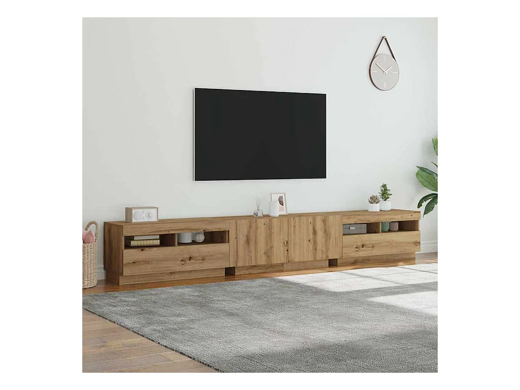 Meuble TV avec lumières LED chêne artisanal bois d'ingénierie