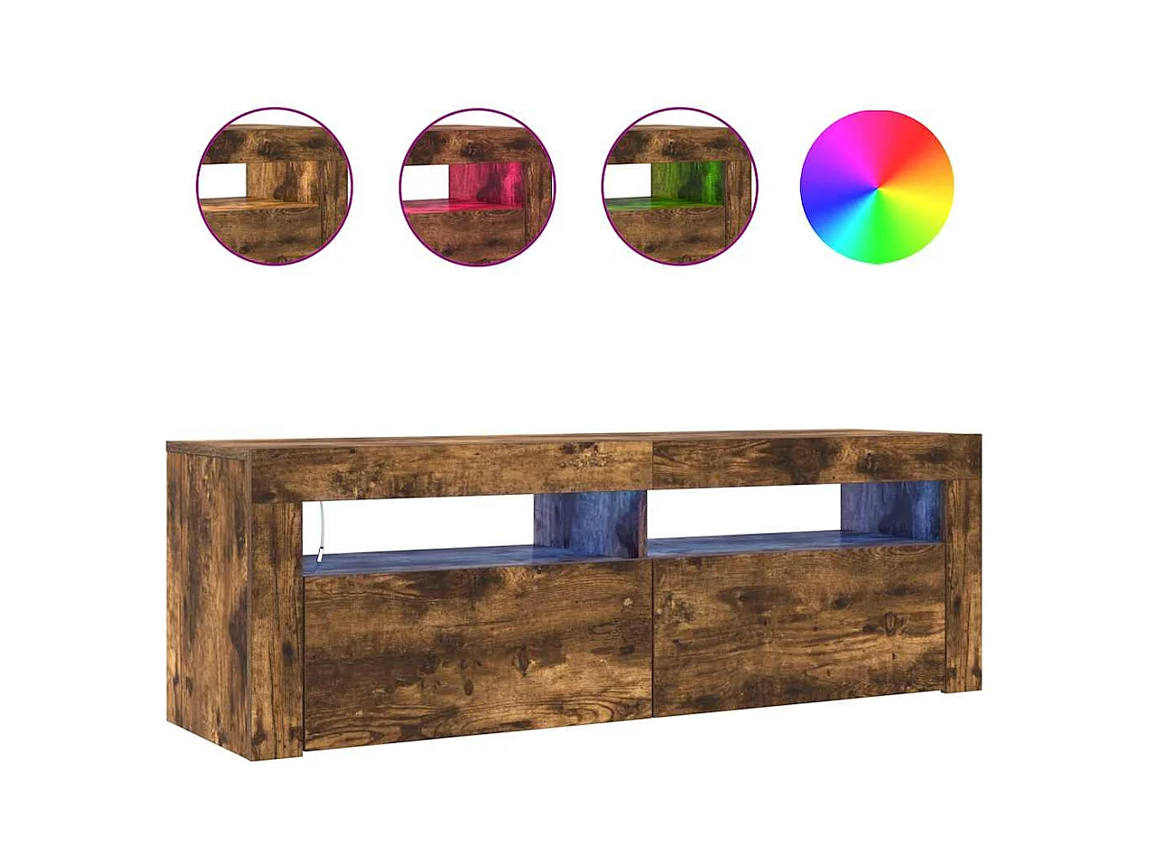 Meuble TV avec lumières LED chêne fumé 120x35x40 cm