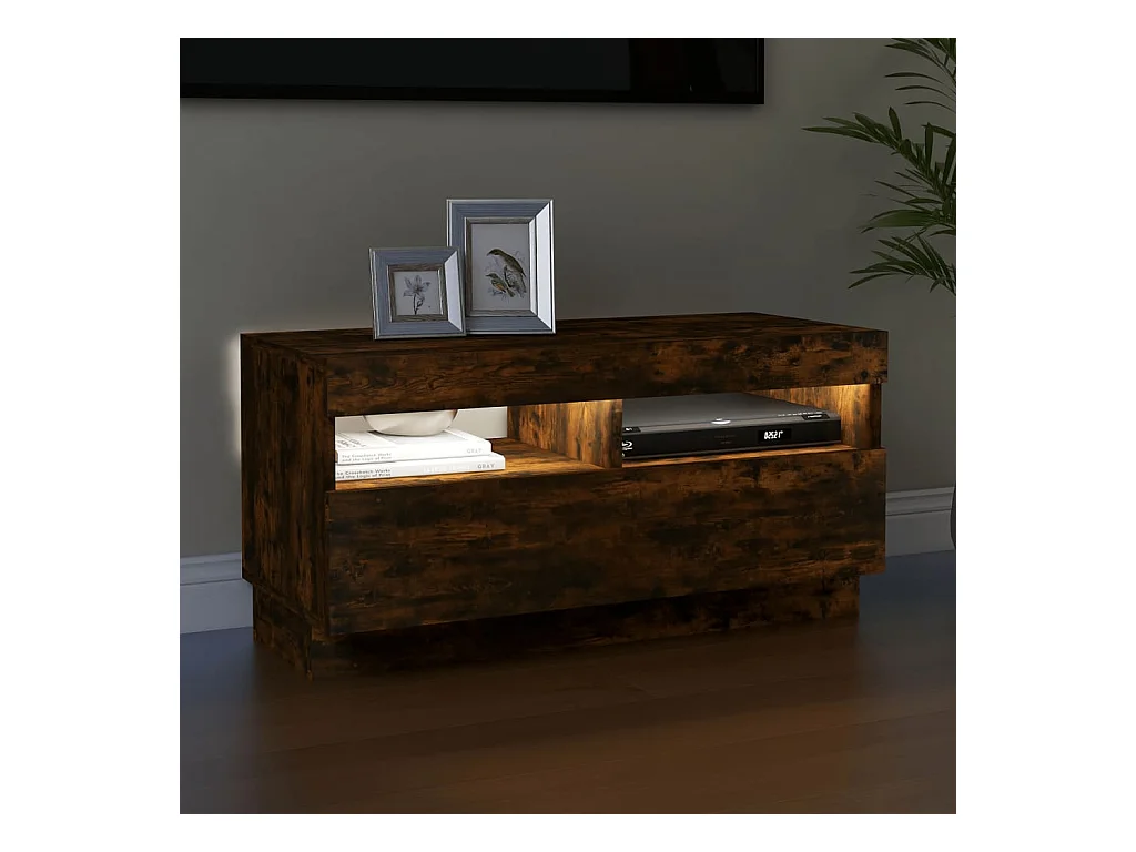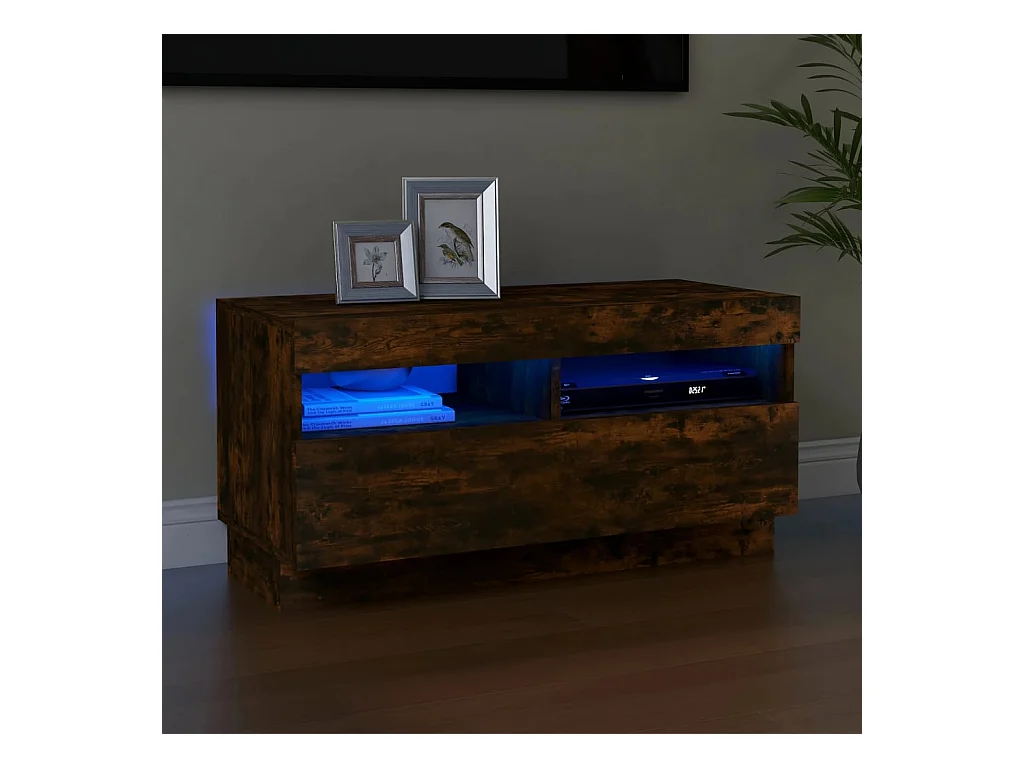Meuble TV avec lumières LED Chêne fumé 75x35x40 cm