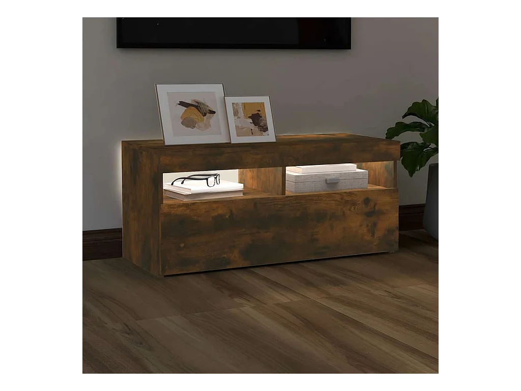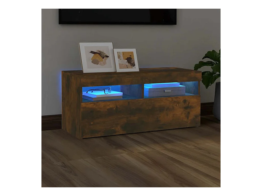 Meuble TV avec lumières LED Chêne fumé 90x35x40 cm