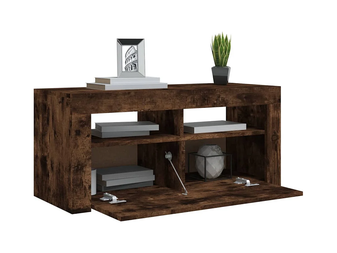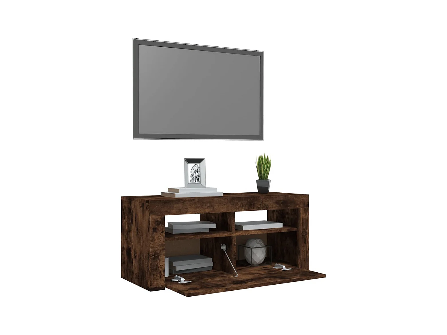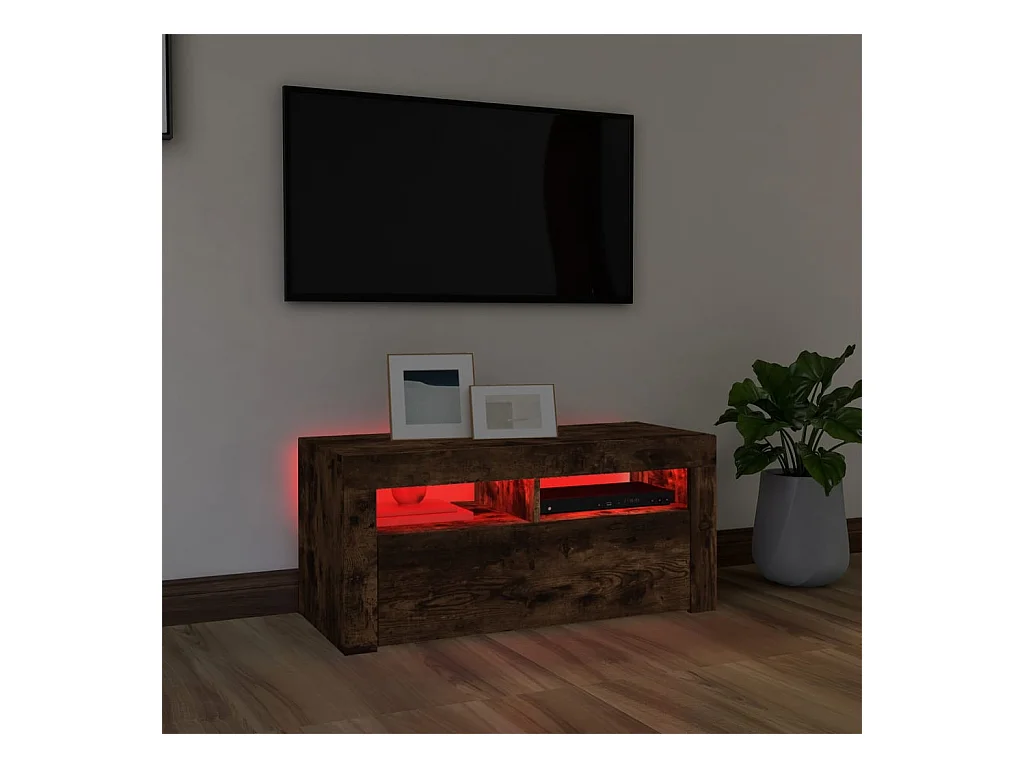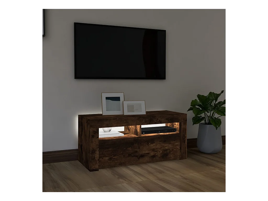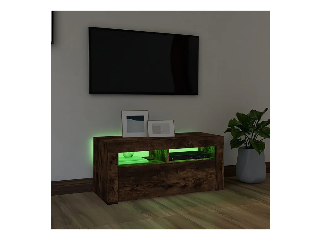 Meuble TV avec lumières LED Chêne fumé 90x35x40 cm