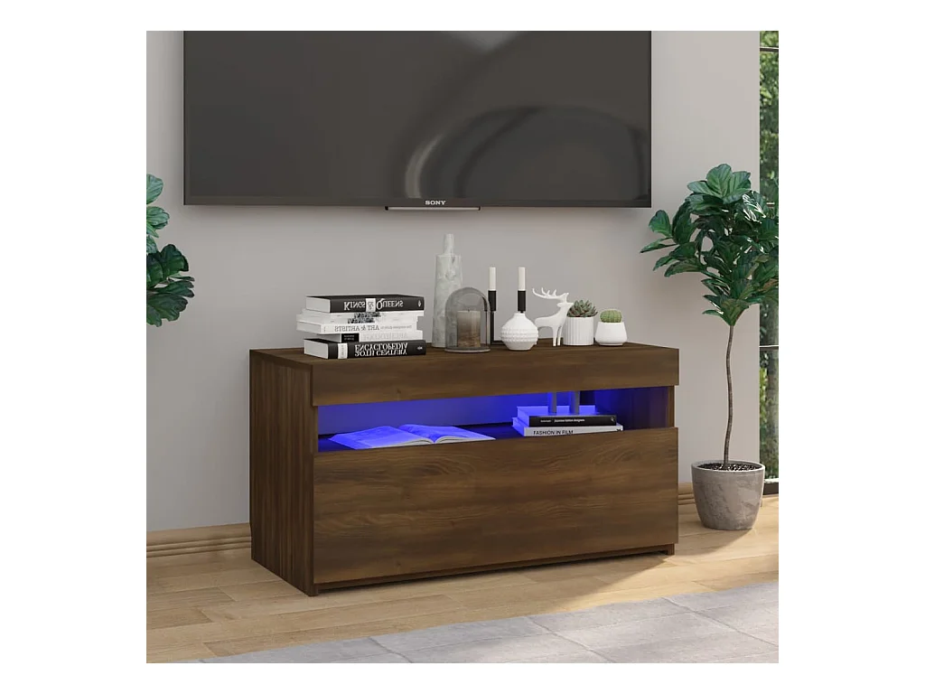 Meuble TV avec lumières LED Chêne marron 75x35x40 cm