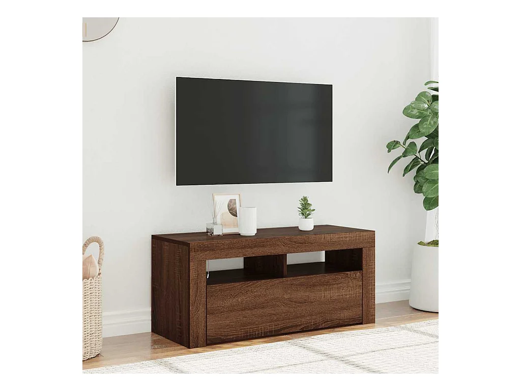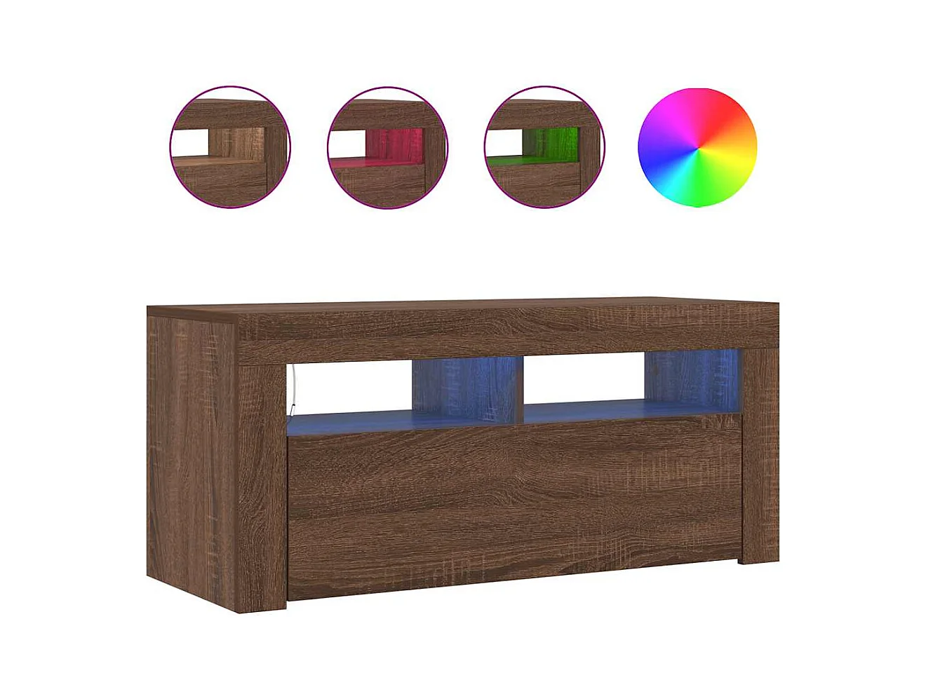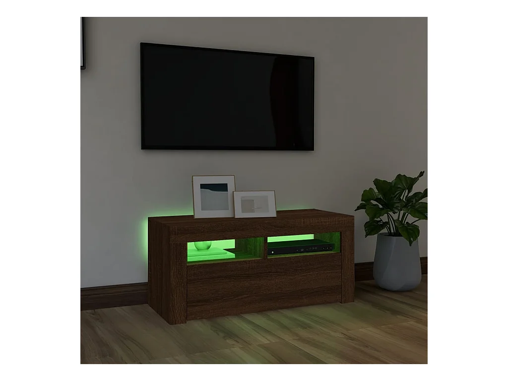 Meuble TV avec lumières LED Chêne marron 90x35x40 cm