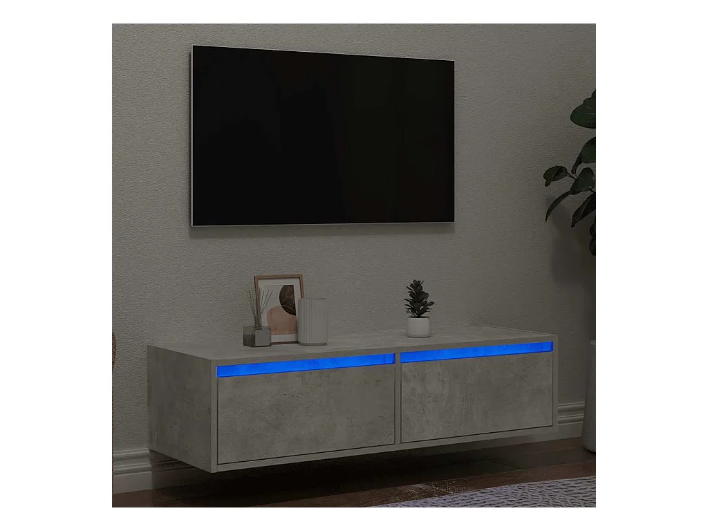 Meuble TV avec lumières LED gris béton 100X35,5x25 cm