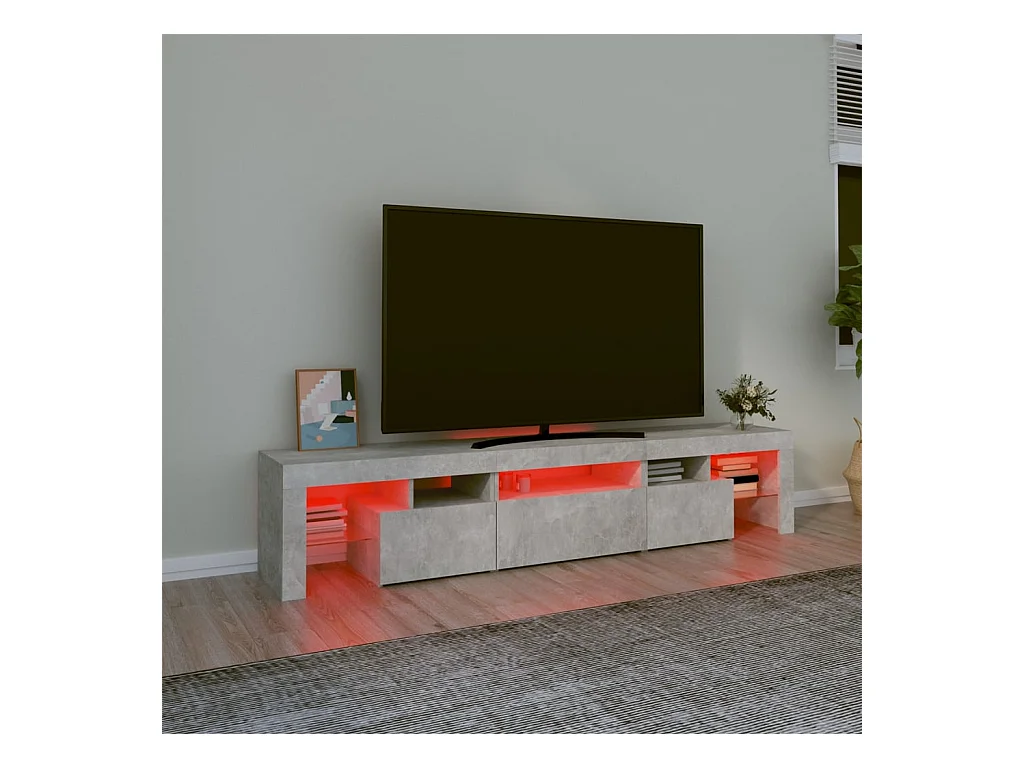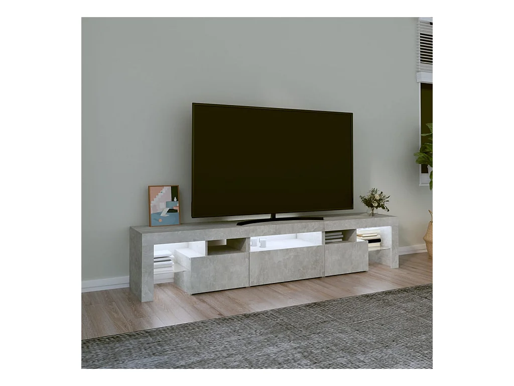 Meuble TV avec lumières LED Gris béton 230x36,5x40 cm FR31027