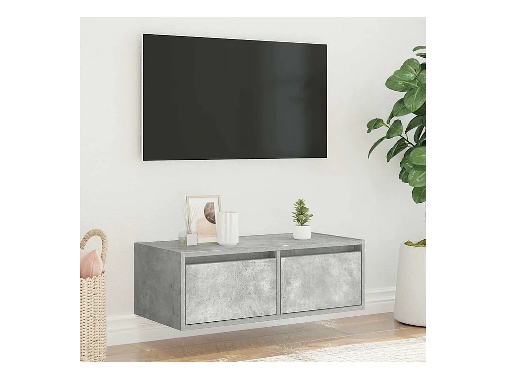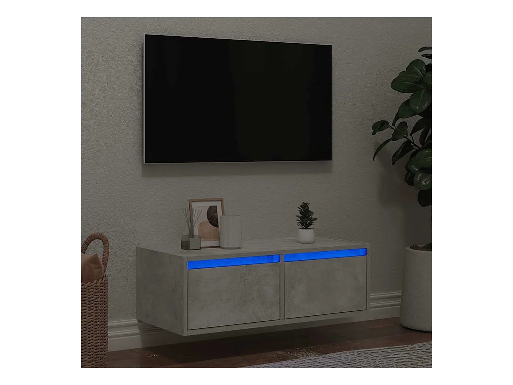 Meuble TV avec lumières LED gris béton 100X35,5x25 cm