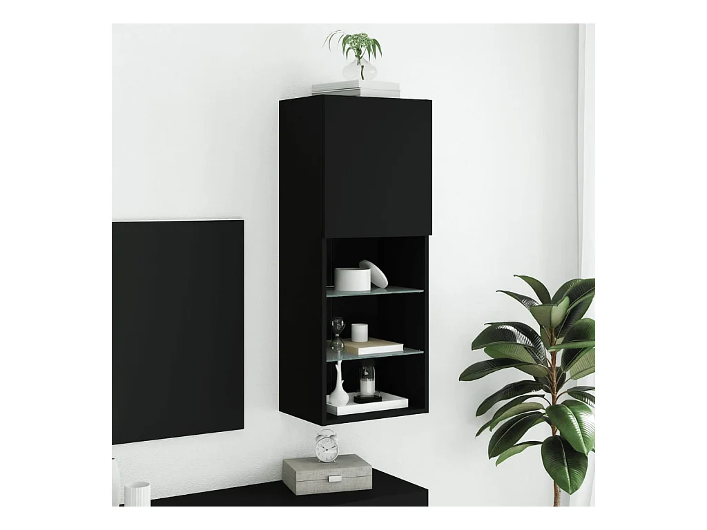 Meuble TV mural avec lumières LED noir 40,5x35x80 cm
