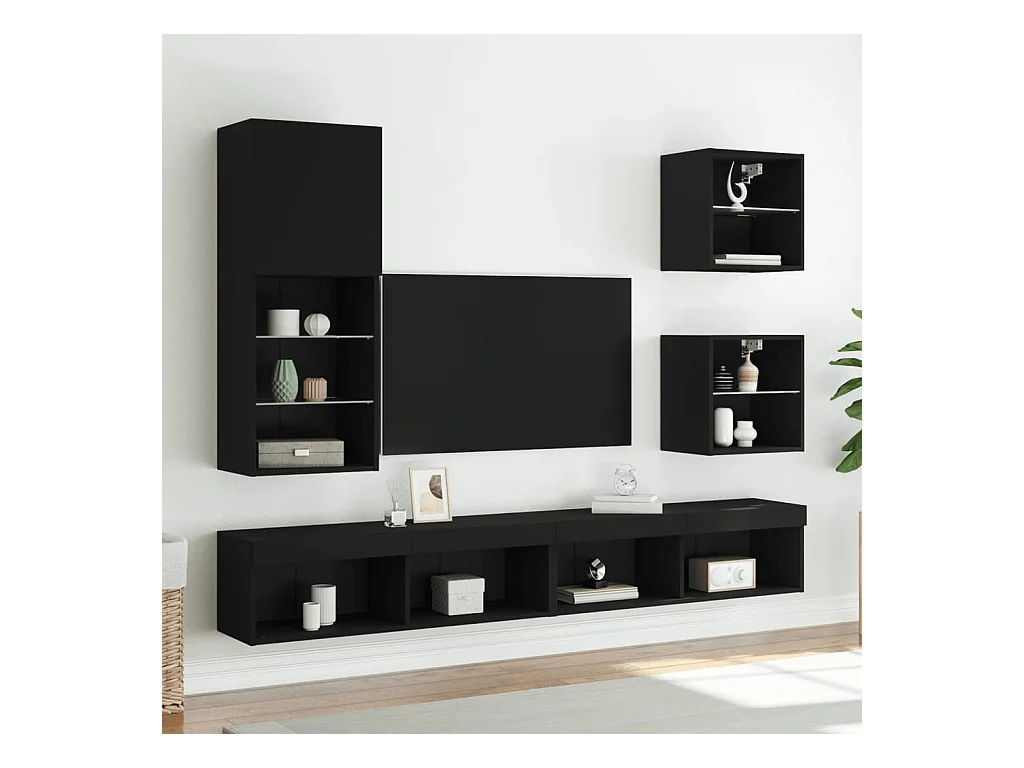 Meuble TV avec LED noir 180x34x50 cm bois d'ingénierie