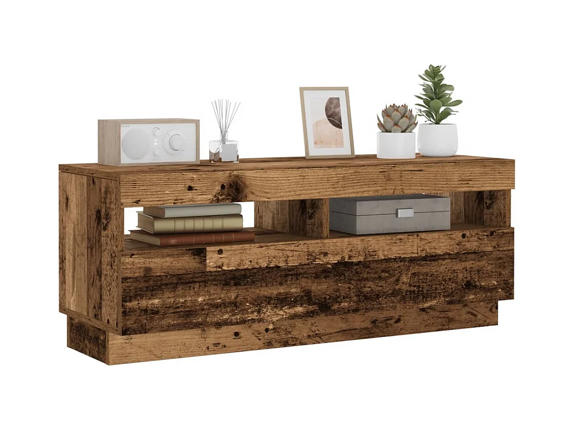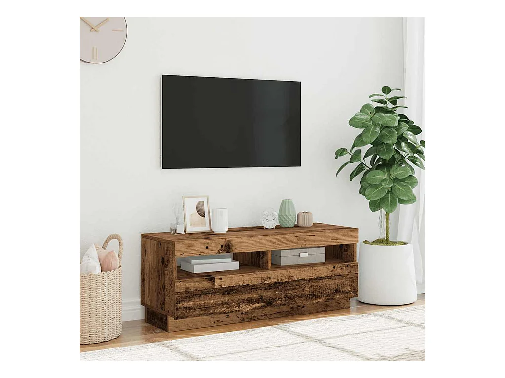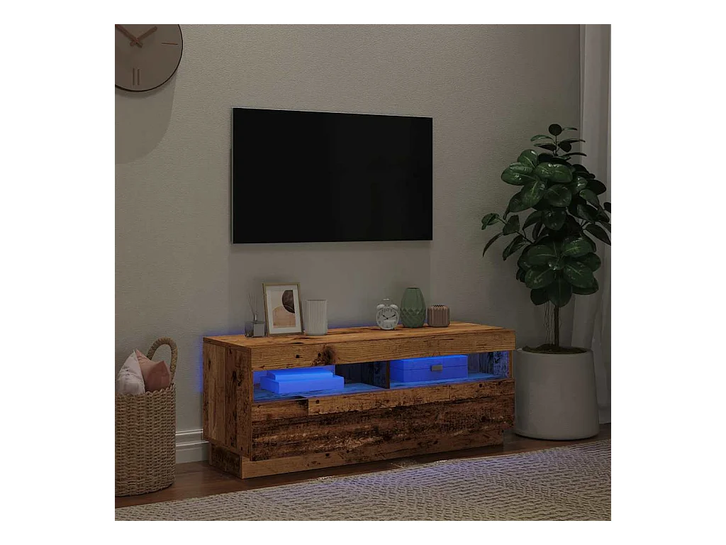 Meuble TV avec lumières LED vieux bois bois d'ingénierie