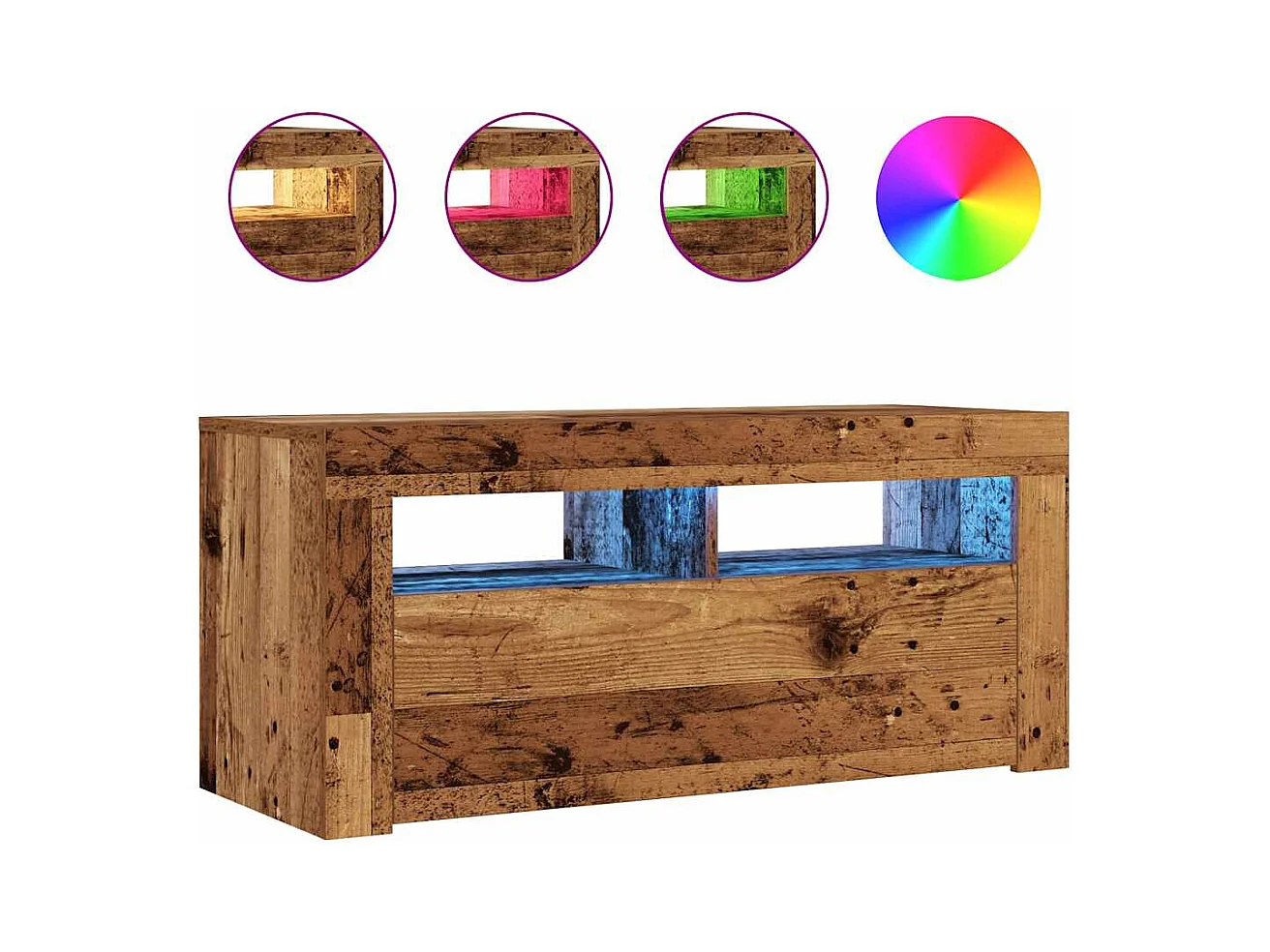 Meuble TV avec lumières LED vieux bois bois d'ingénierie