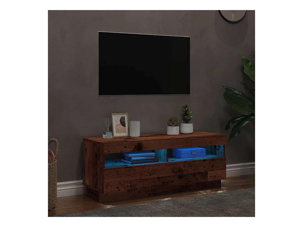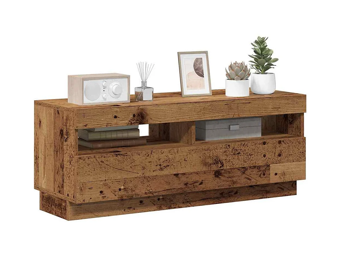 Meuble TV avec lumières LED vieux bois bois d'ingénierie