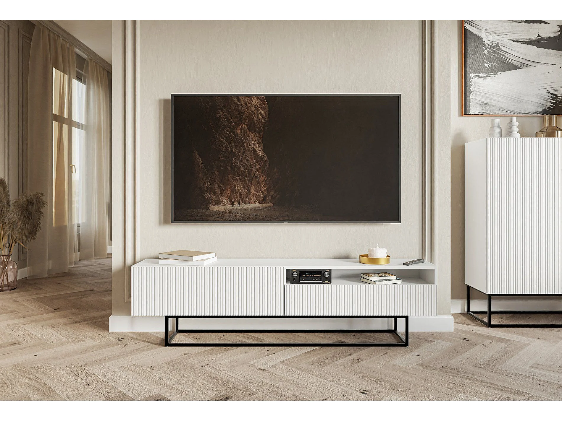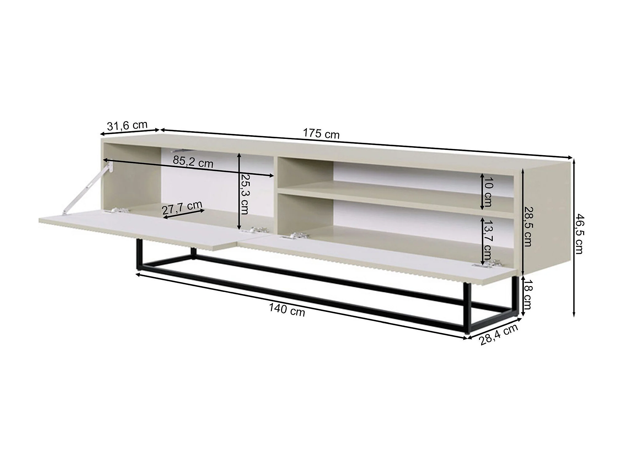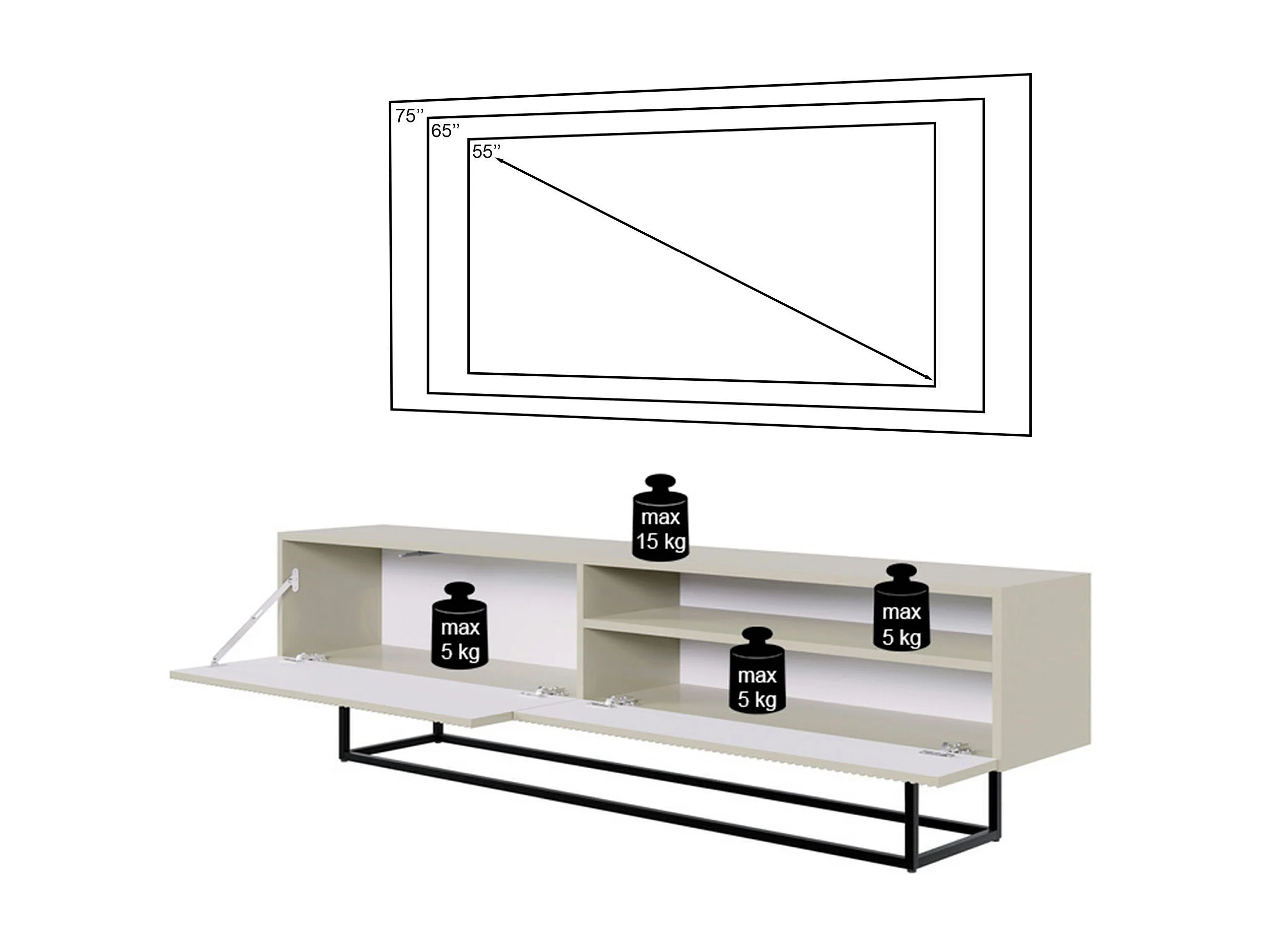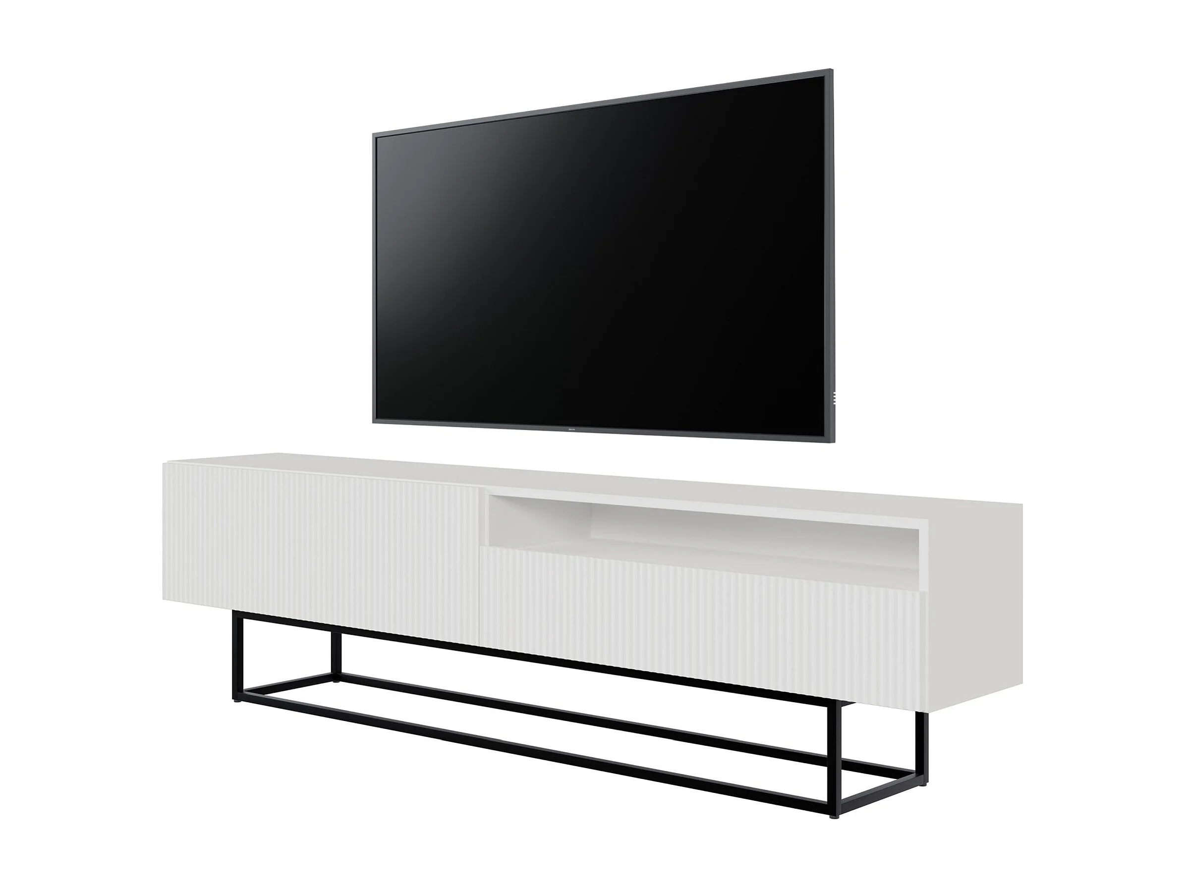 Meuble TV avec niche sur pieds noir - 175 cm - blanc - VELDIO