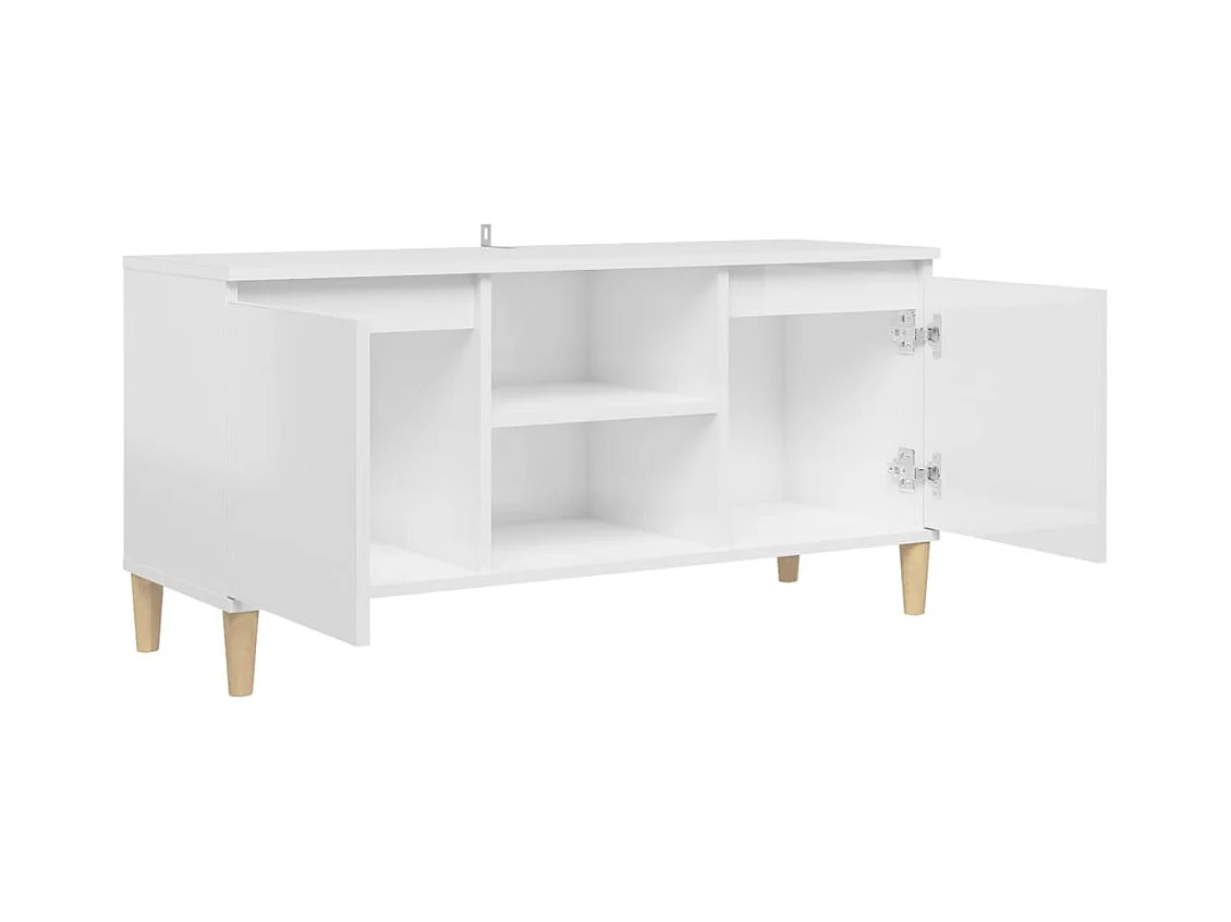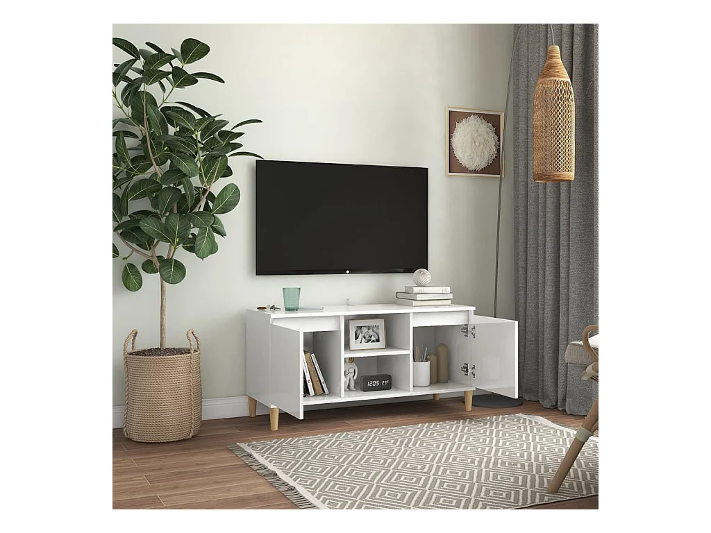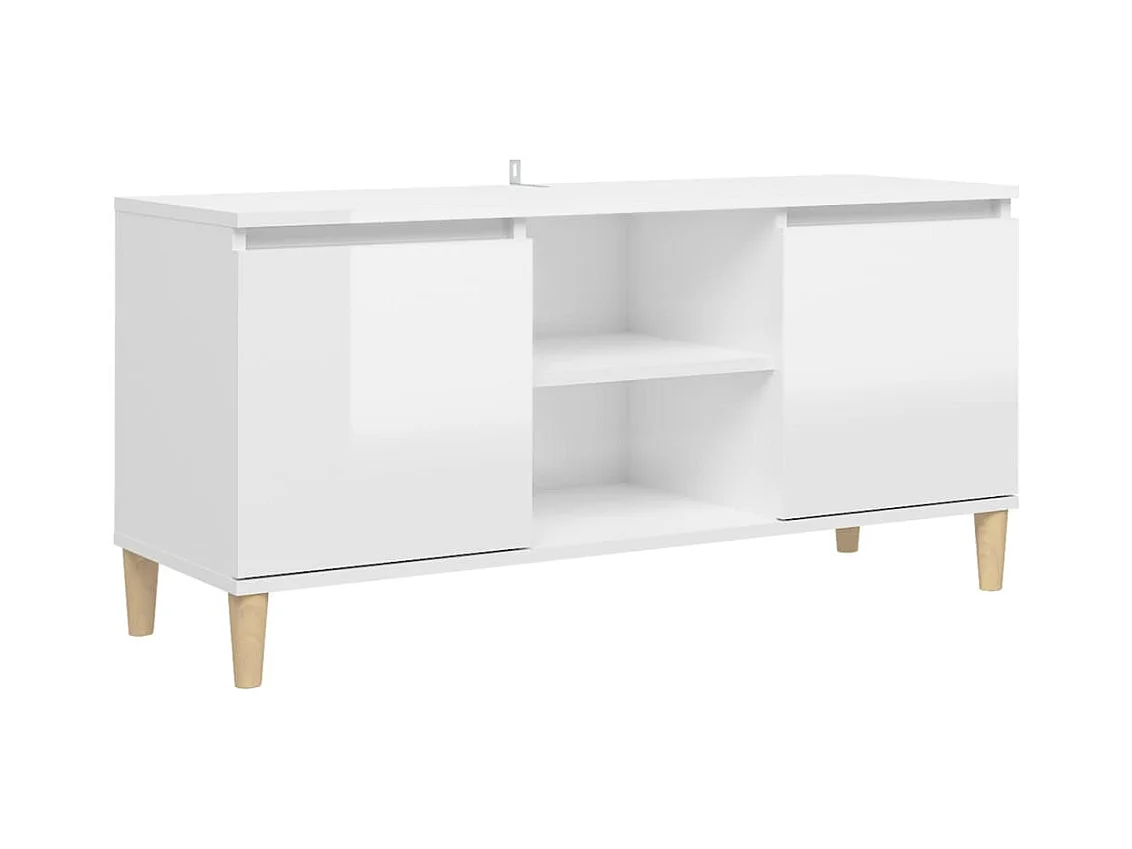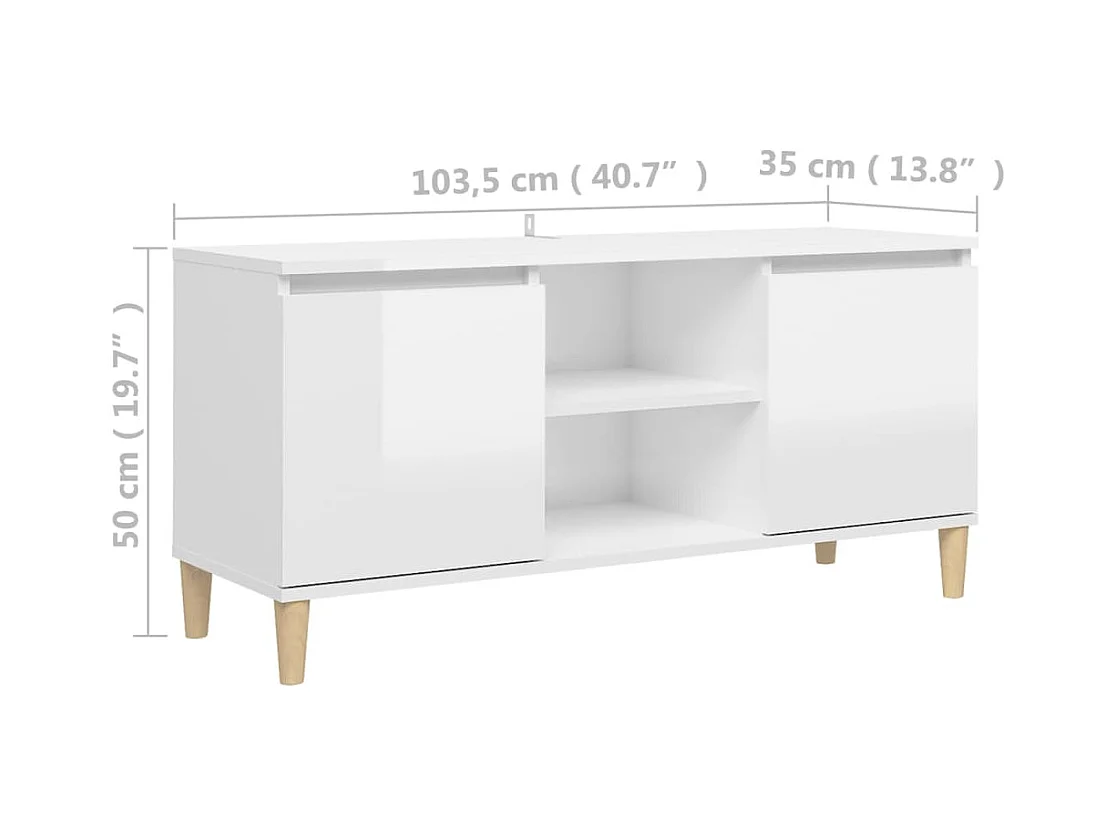 Meuble TV avec pieds en bois Blanc brillant 103,5x35x50 cm