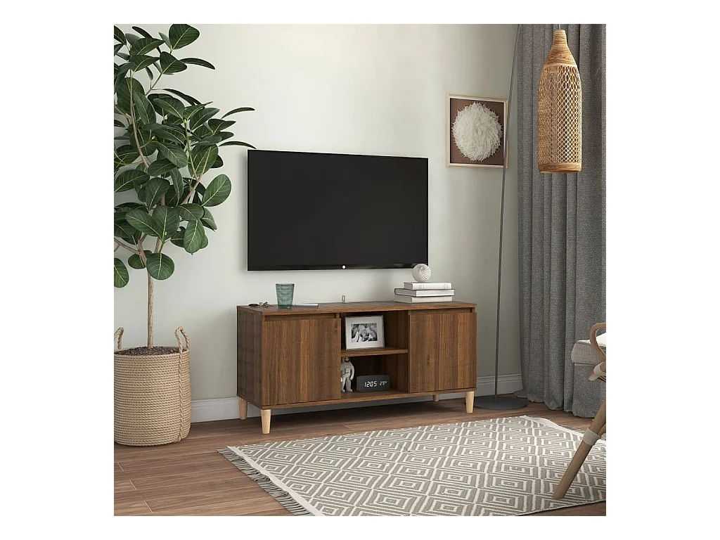 Meuble TV avec pieds en bois massif Chêne marron 103,5x35x50 cm