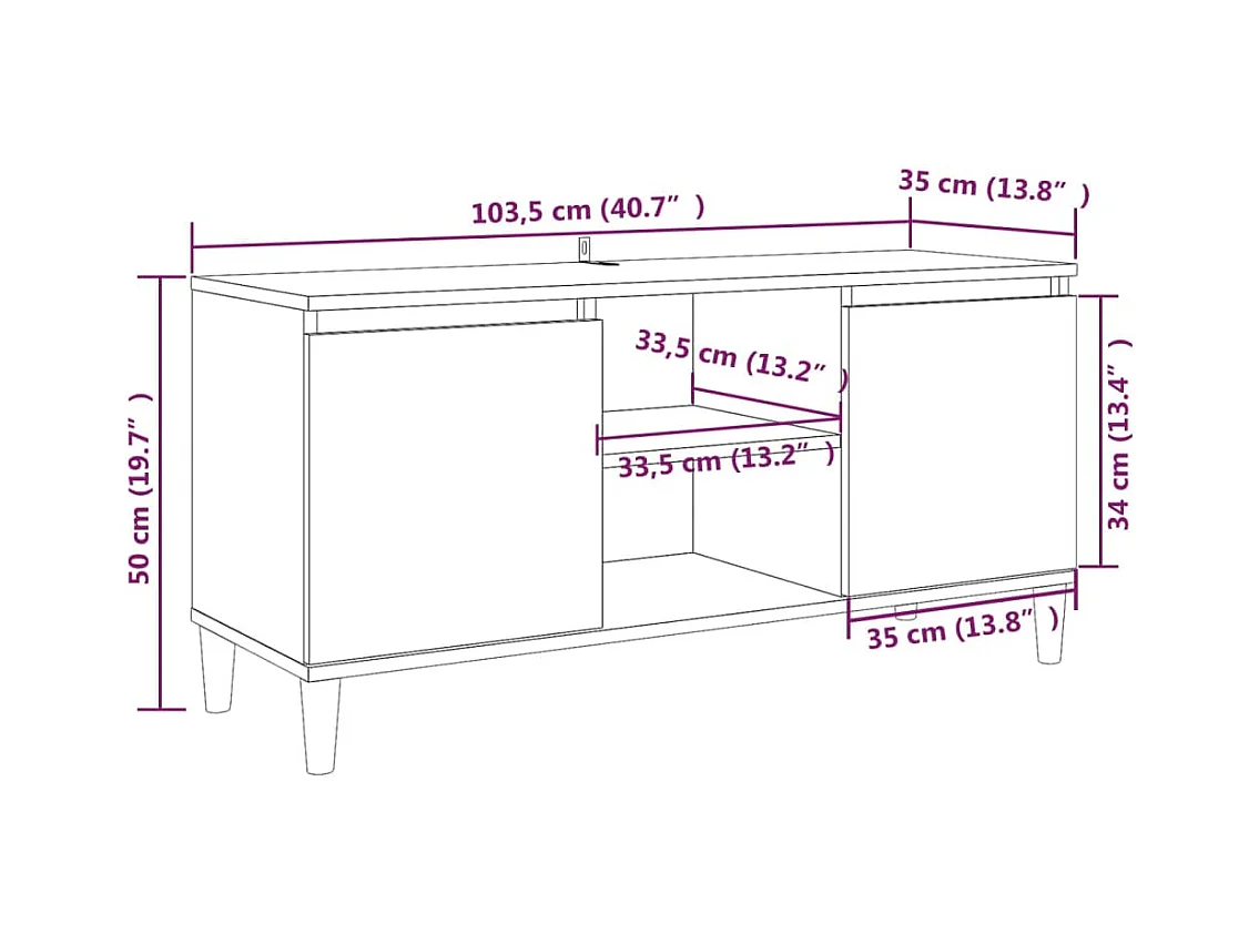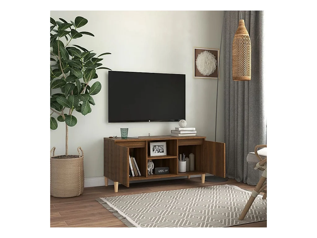 Meuble TV avec pieds en bois massif Chêne sonoma 103,5x35x50 cm WET7662