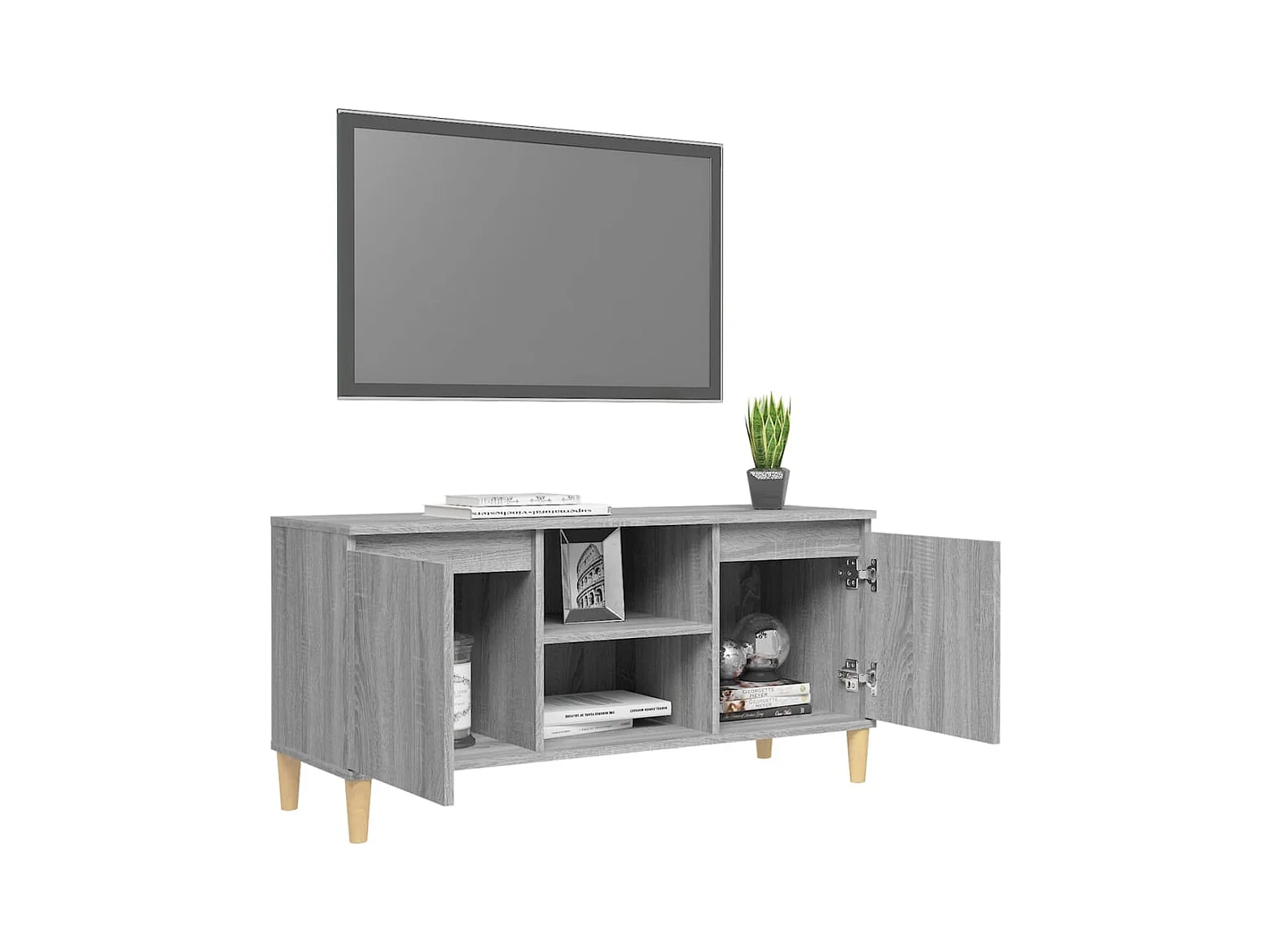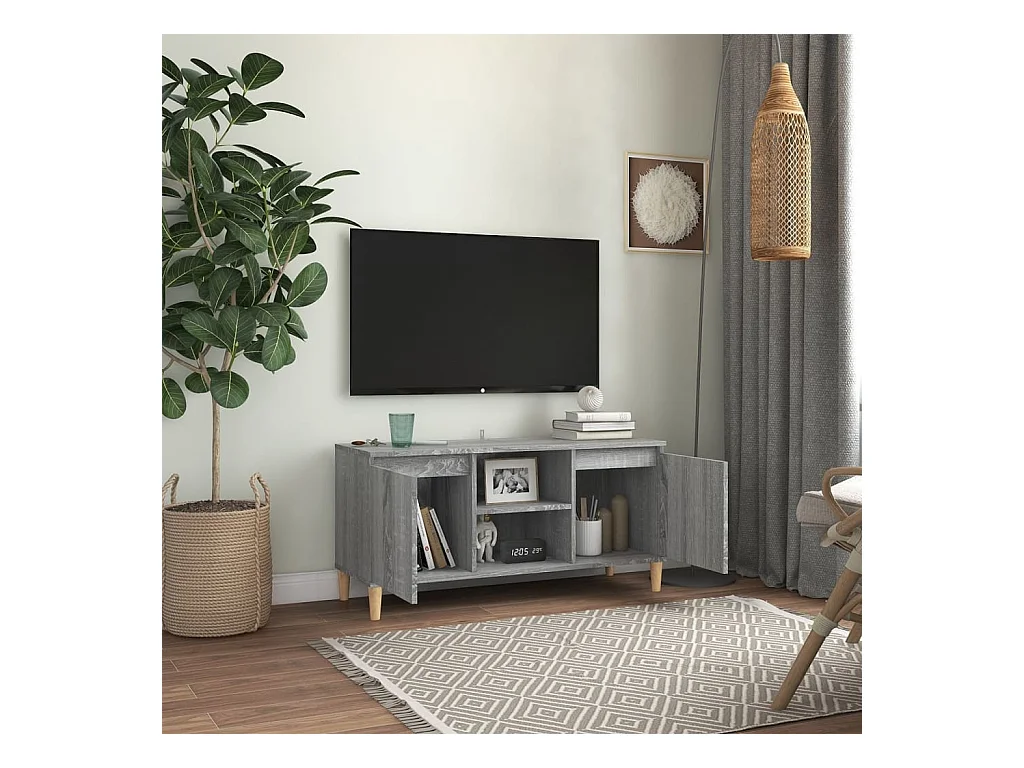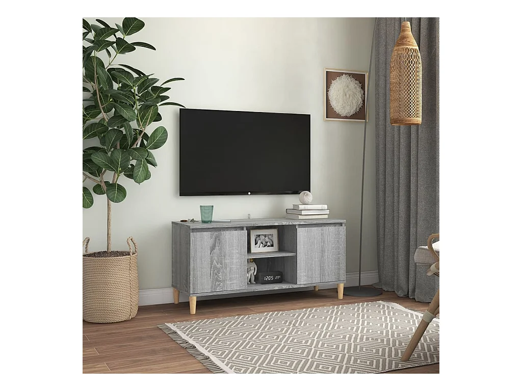 Meuble TV avec pieds en bois solide Sonoma gris 103,5x35x50 cm
