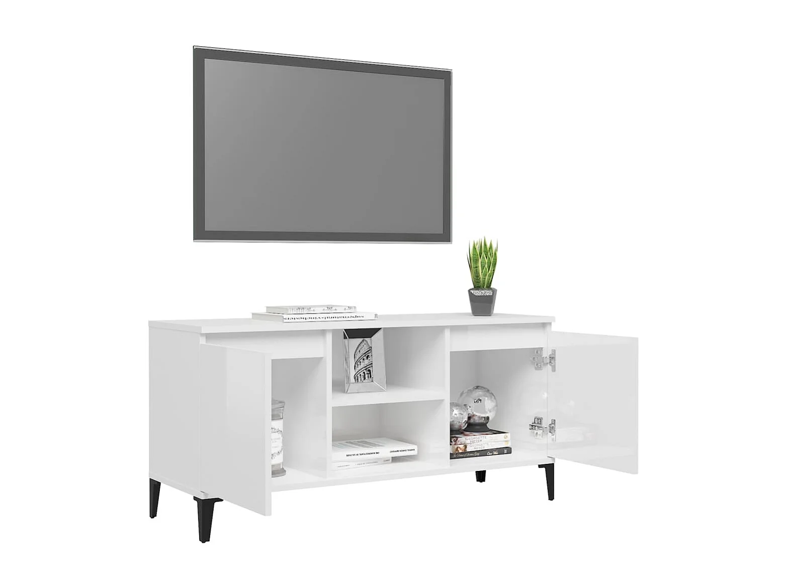 Meuble TV avec pieds en métal Blanc brillant 103,5x35x50 cm