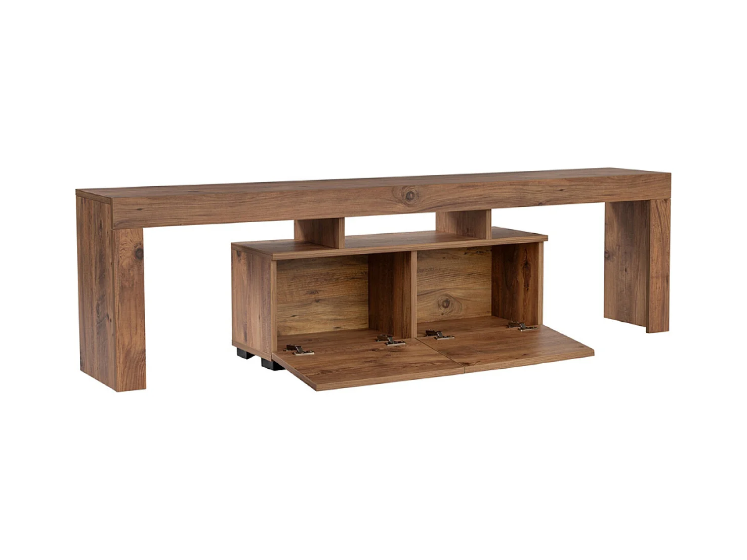 Meuble TV 200cm - avec LED et porte en verre - MDF et panneau de particules - Naturel
