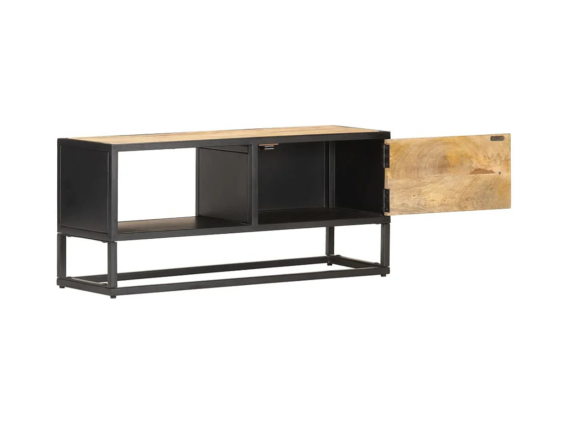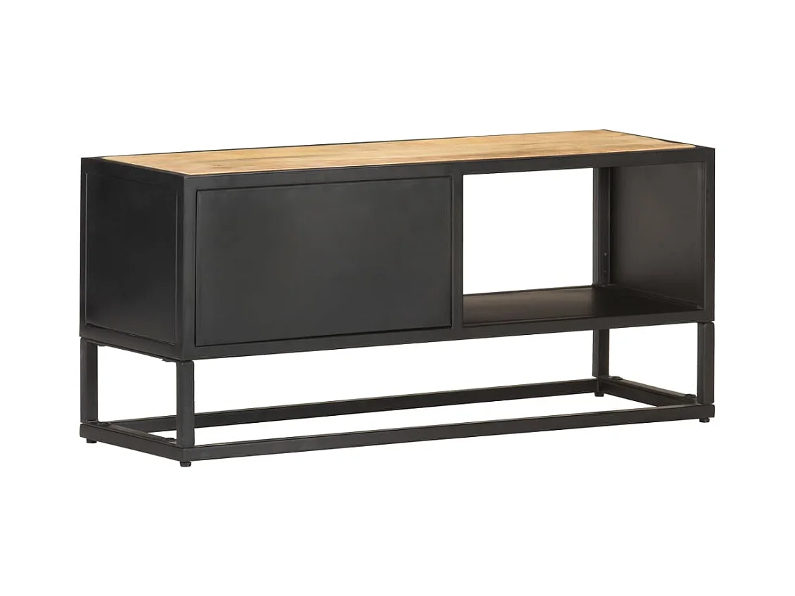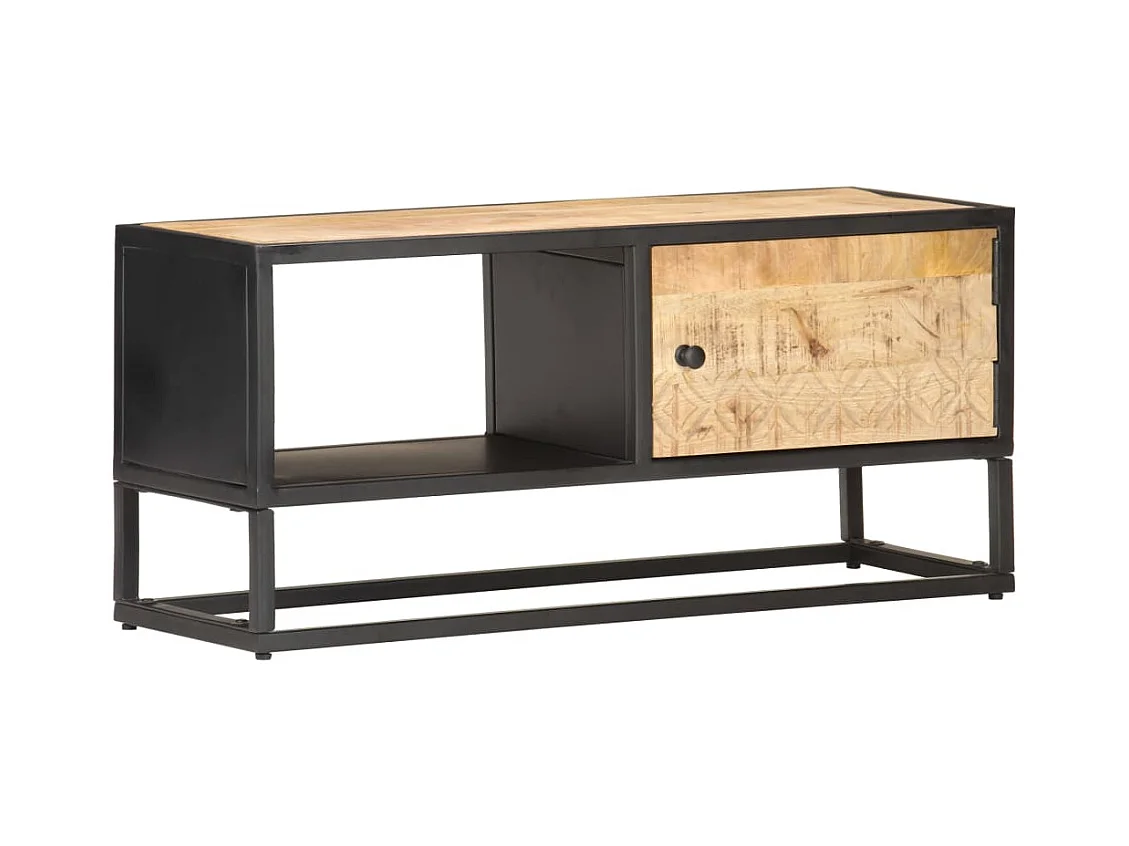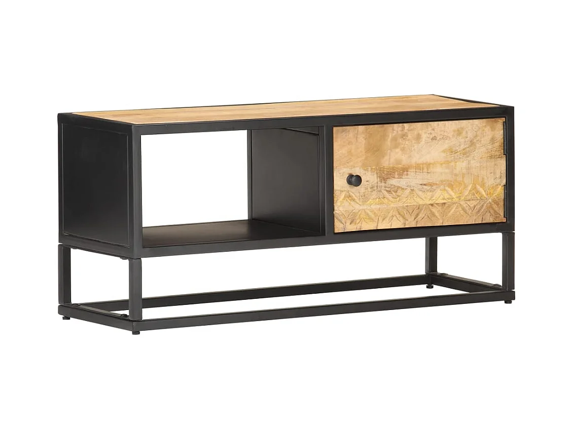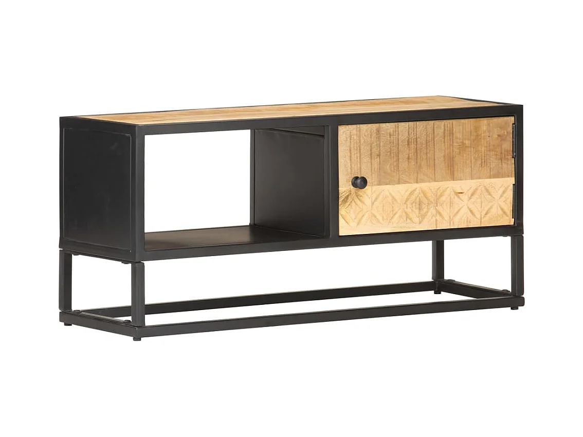 Meuble TV avec porte sculptée 90x30x40 cm Bois de manguier brut