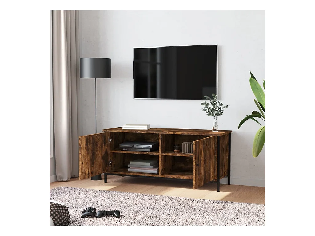 Meuble TV chêne fumé 102x35x45 cm bois d'ingénierie