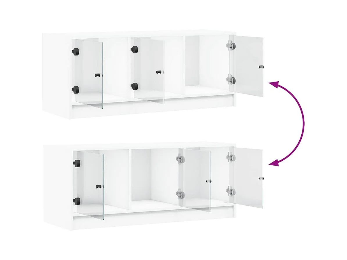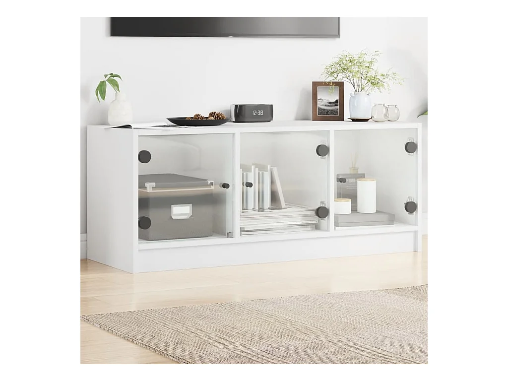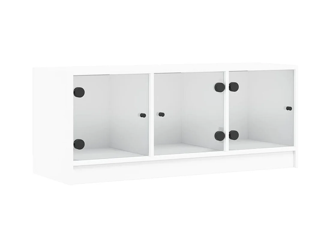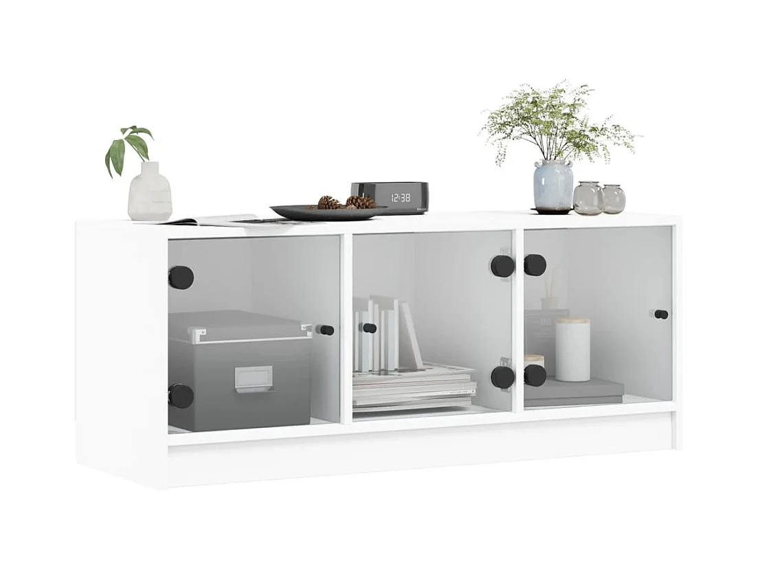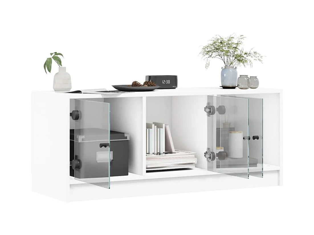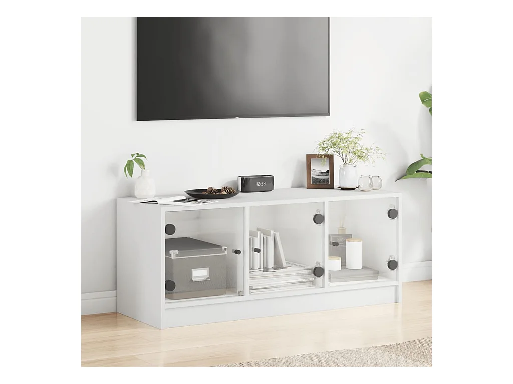 Meuble TV avec portes en verre blanc 102x37x42 cm