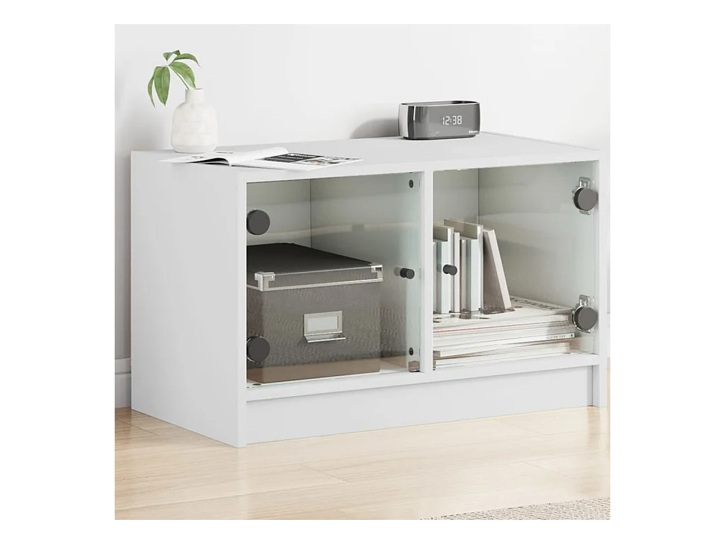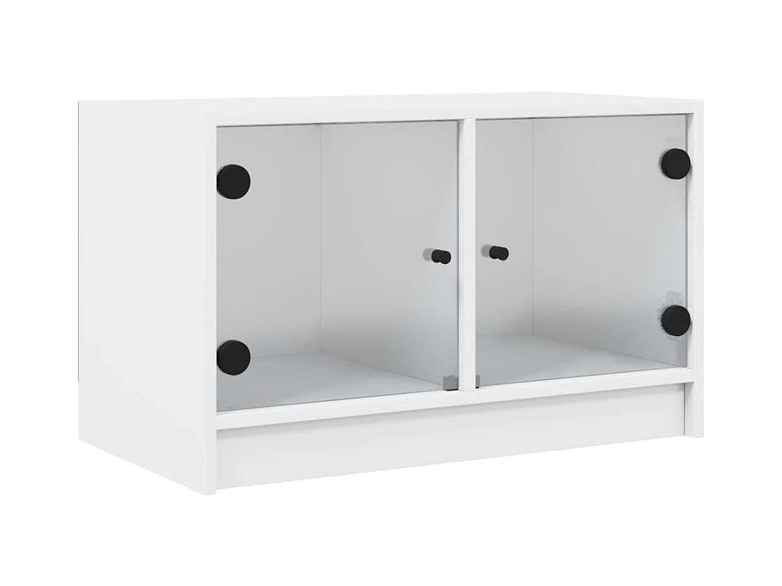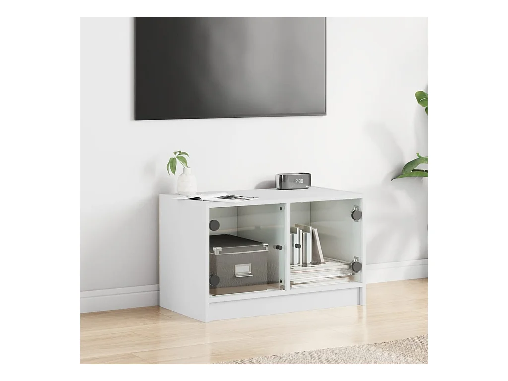 Meuble TV avec portes en verre blanc 68x37x42 cm