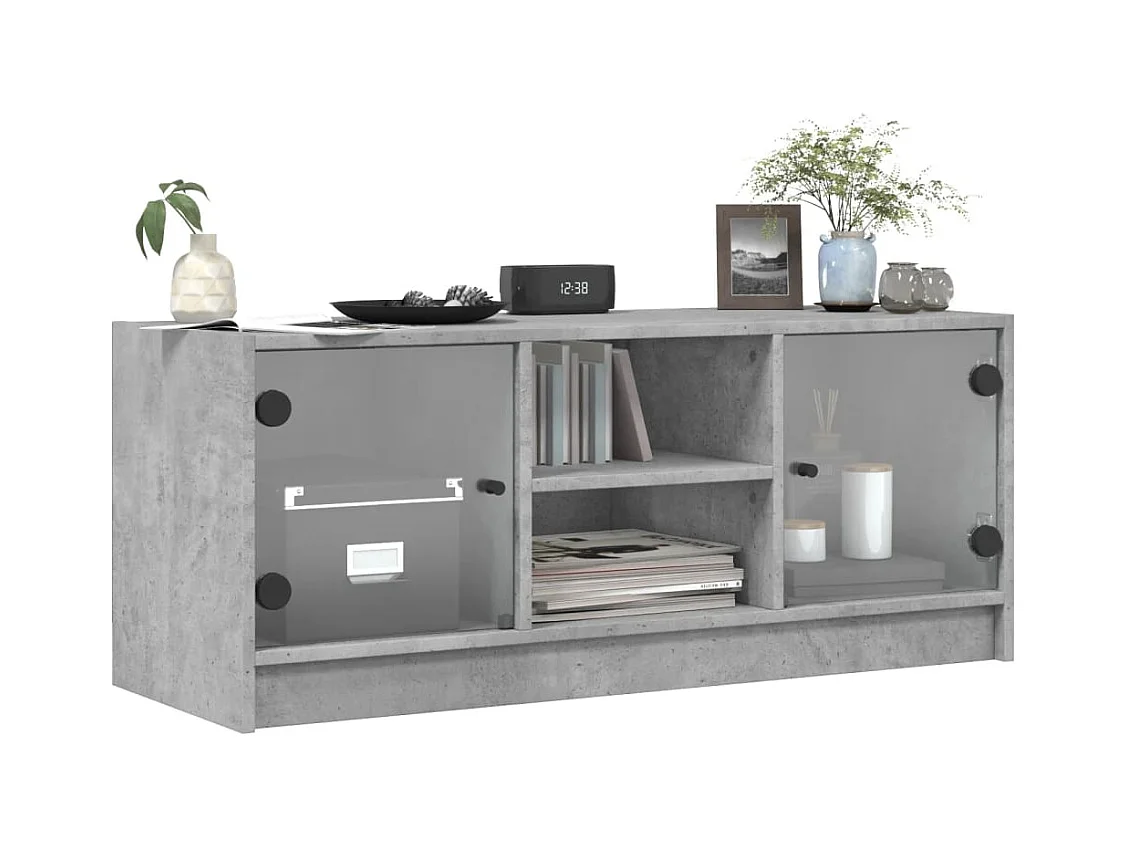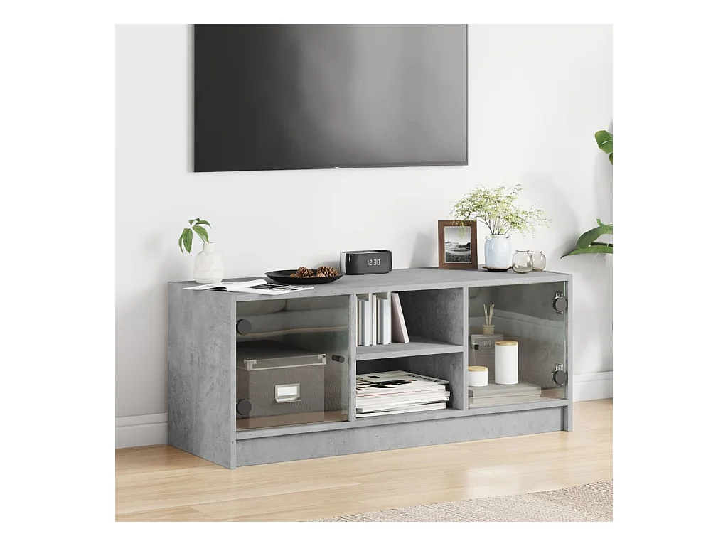 Meuble TV avec portes en verre gris béton 102x37x42 cm