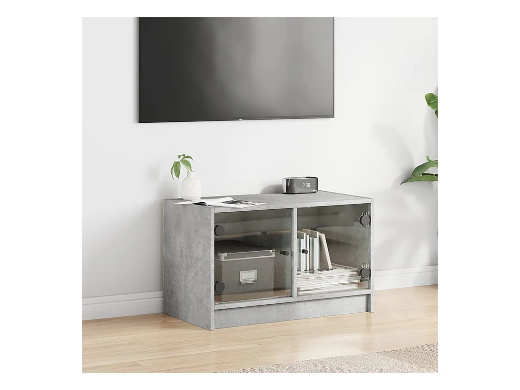 Meuble TV avec portes en verre gris béton 68x37x42 cm