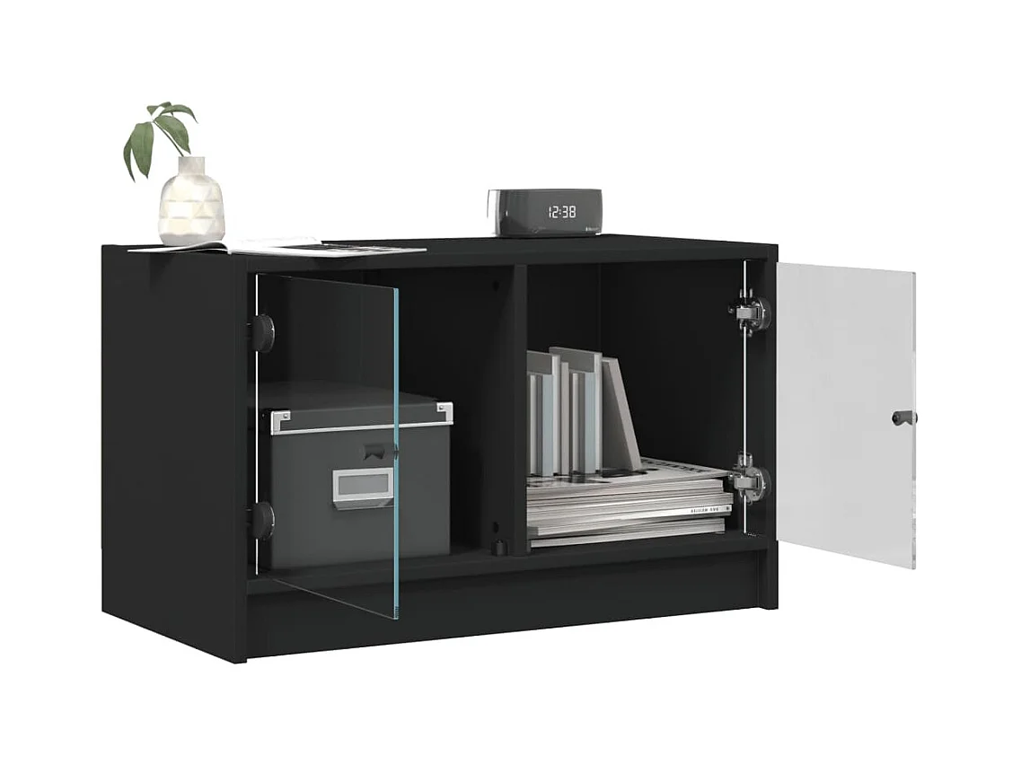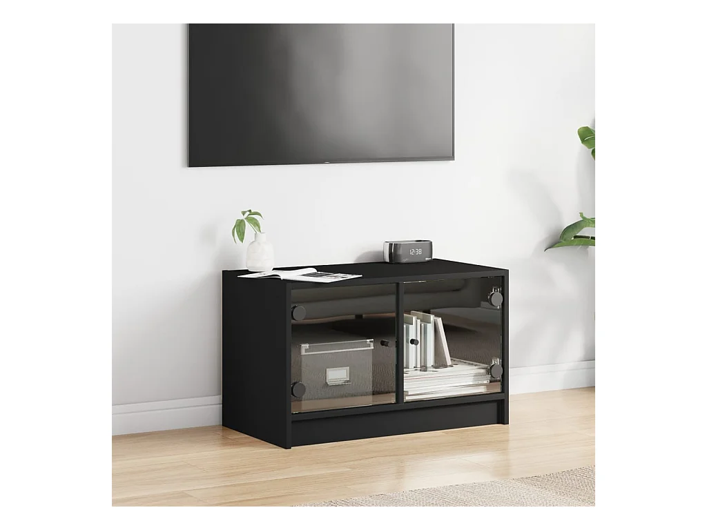 Meuble TV avec portes en verre noir 68x37x42 cm