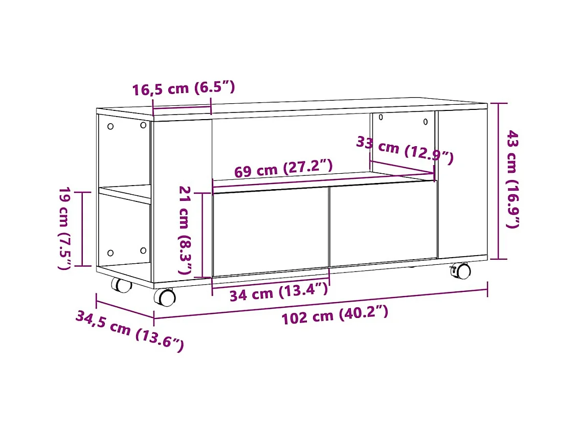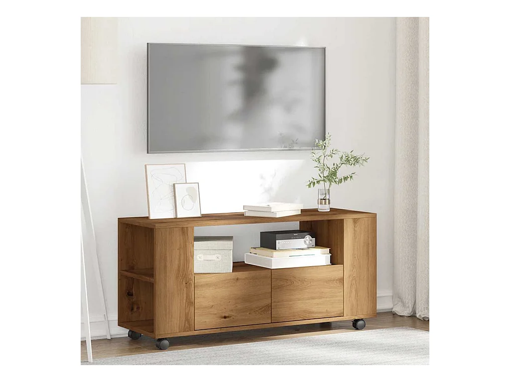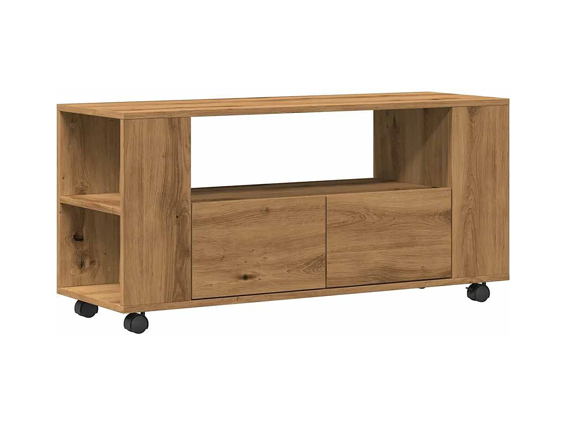 Meuble TV avec roulettes chêne artisanal bois d'ingénierie