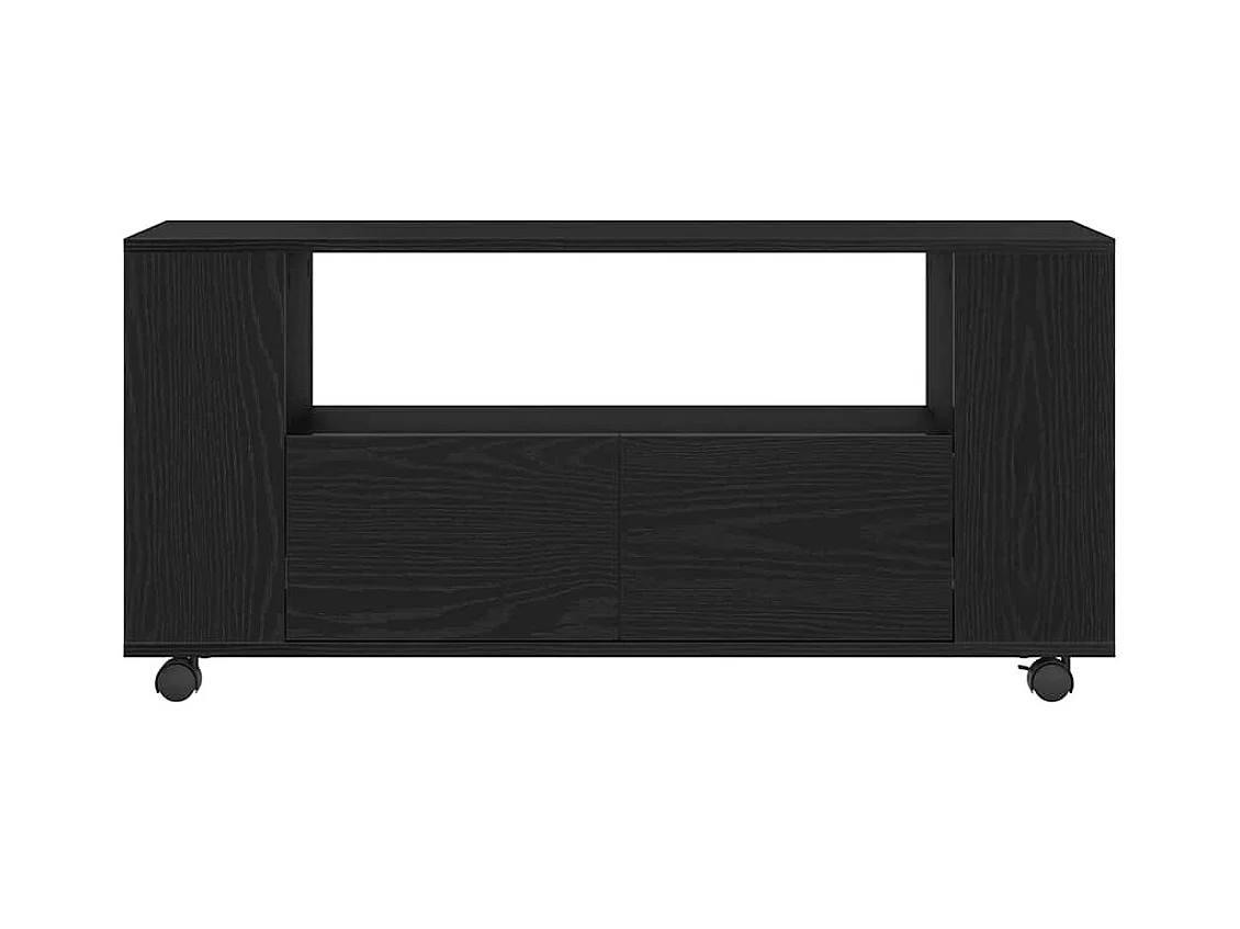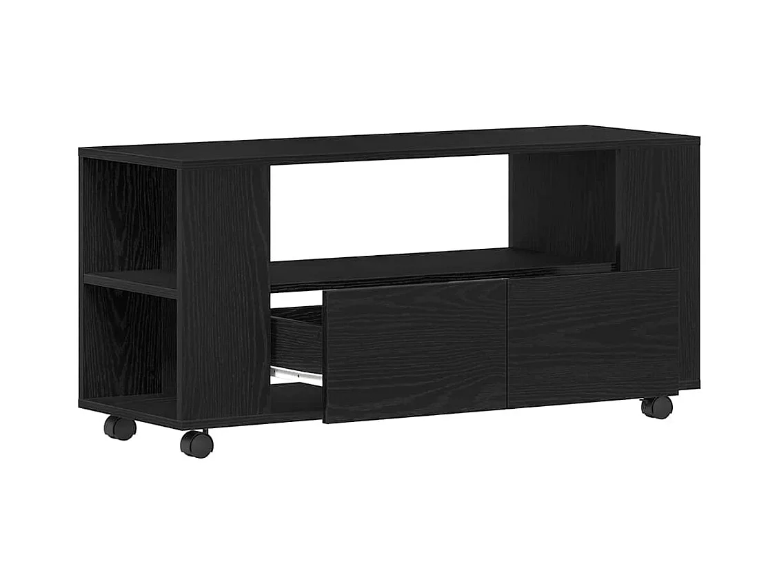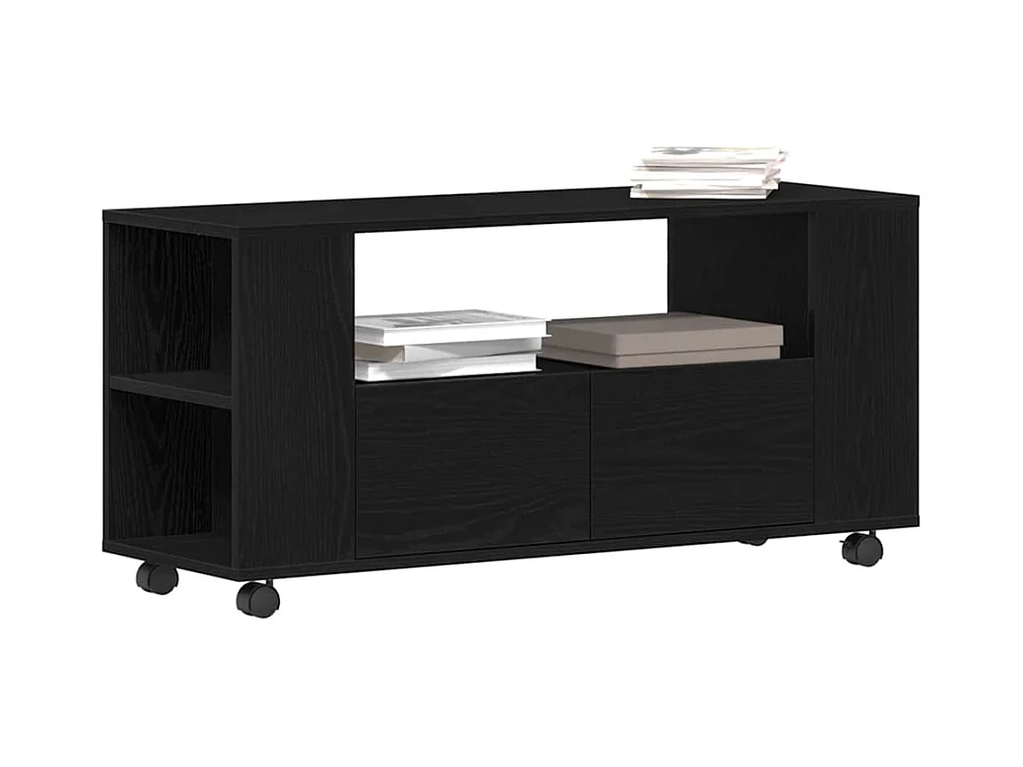 Meuble TV avec roulettes chêne noir bois d'ingénierie