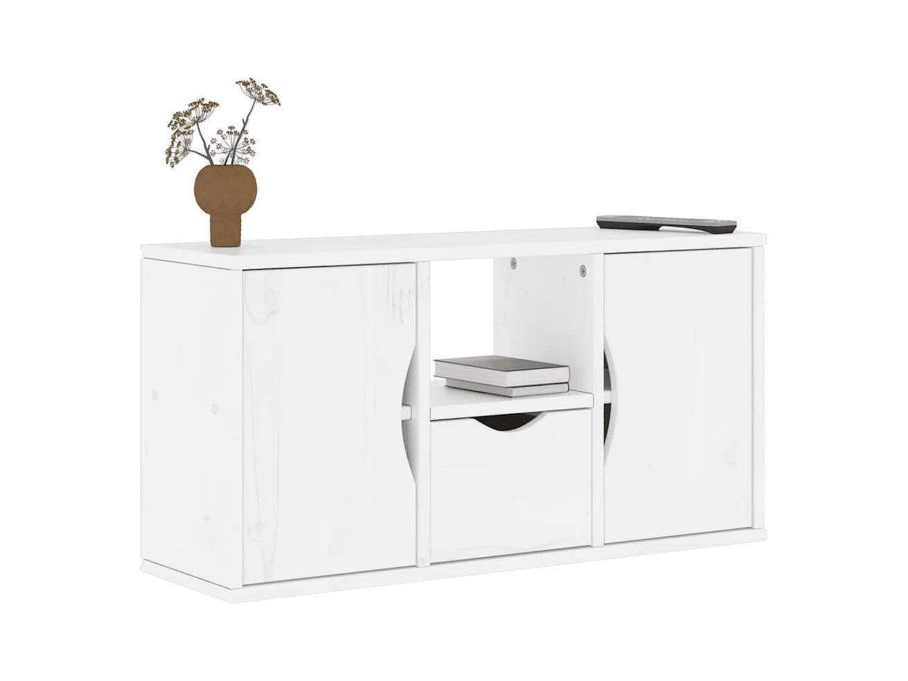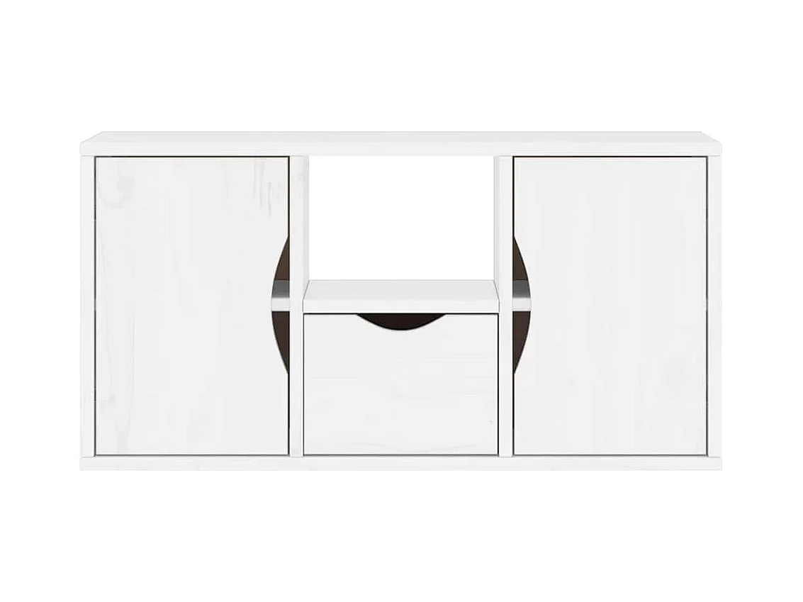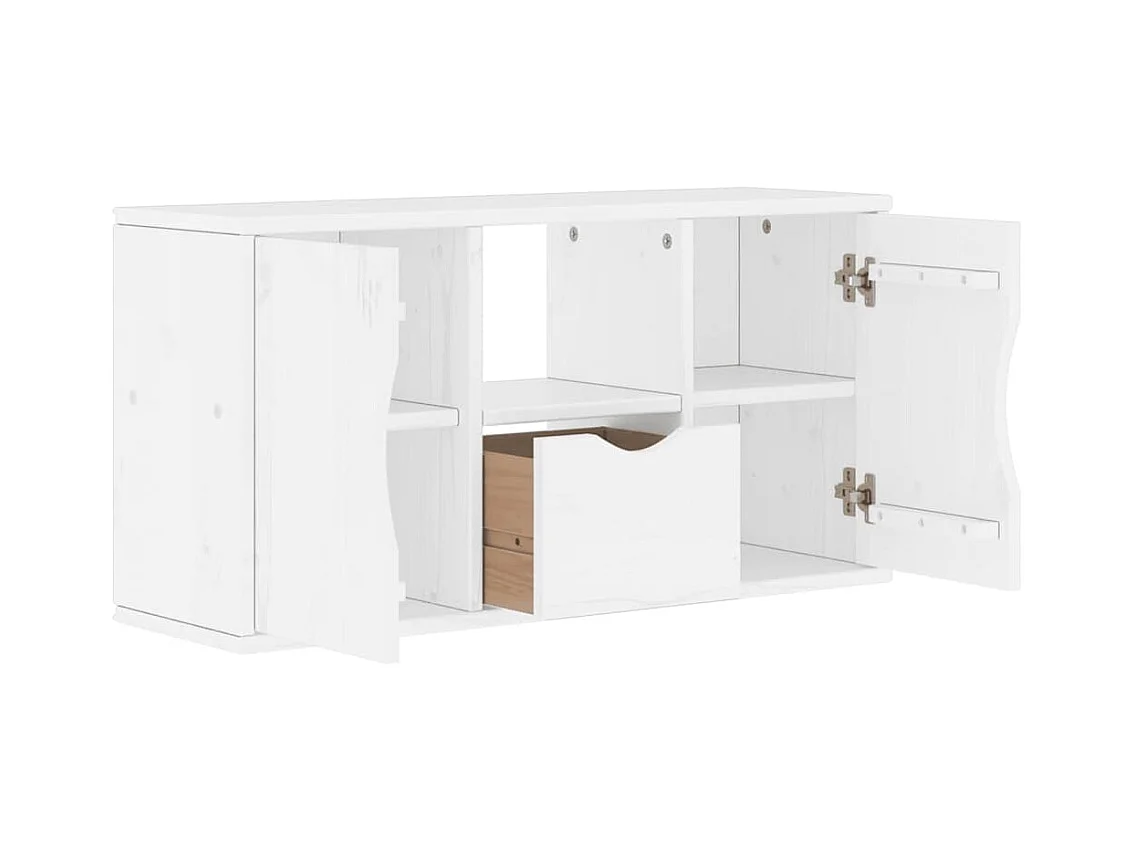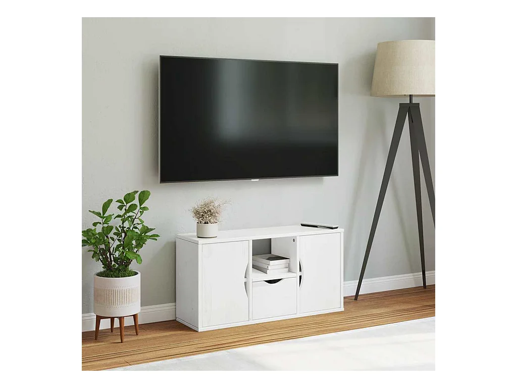 Meuble TV blanc 79x24x40 cm bois massif pin