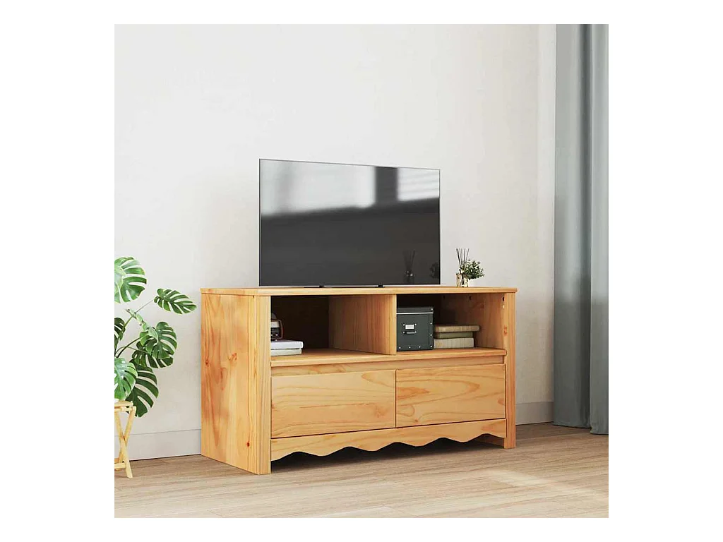Meuble TV FLORO cire marron 114x43x55 cm bois massif de pin