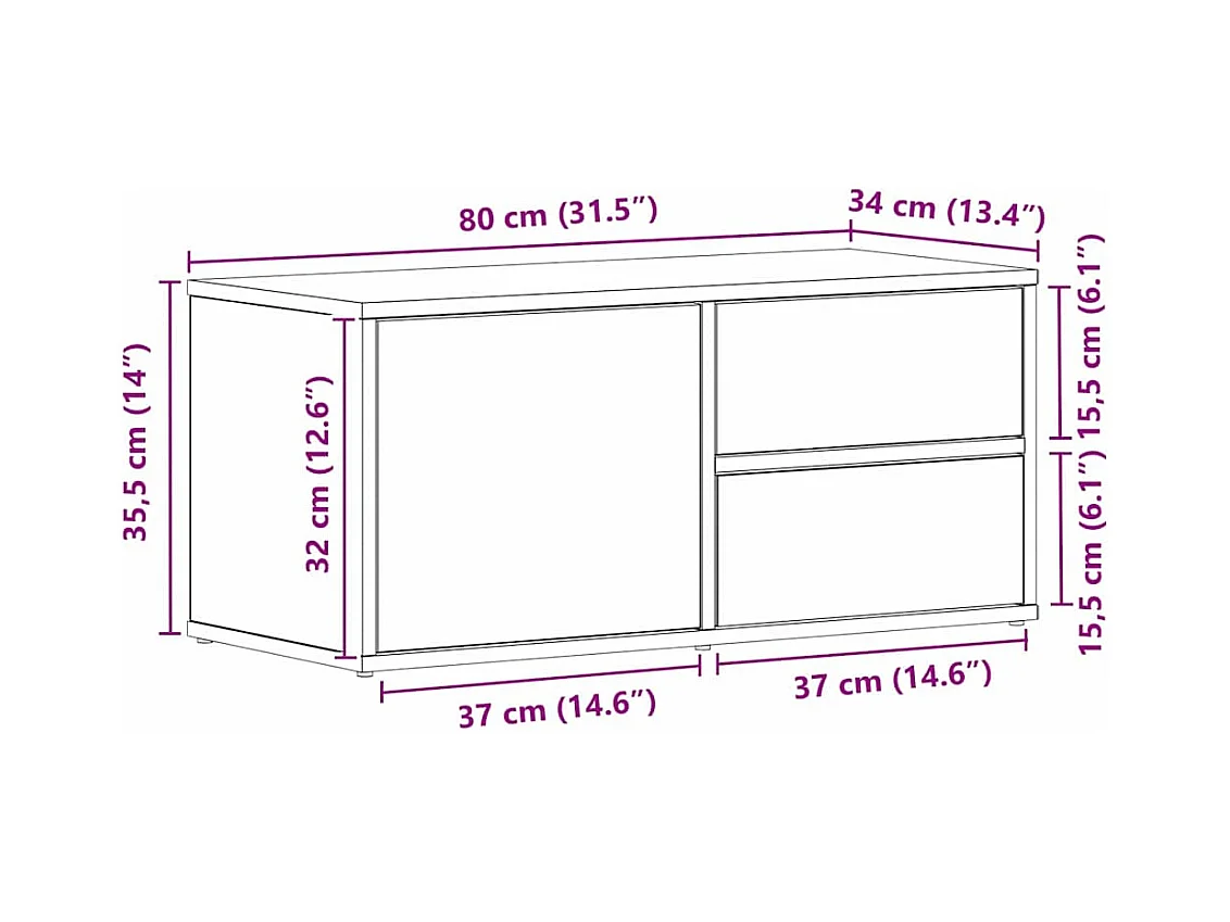 Meuble TV avec tiroir Noir 80 x 34 x 35.5 cm Bois d'ingénierie
