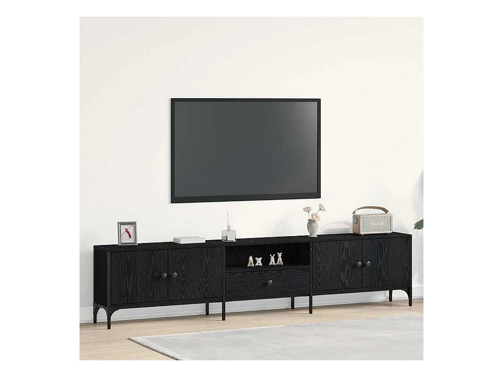 Meuble TV noir 202x39x43,5 cm acier laminé à froid