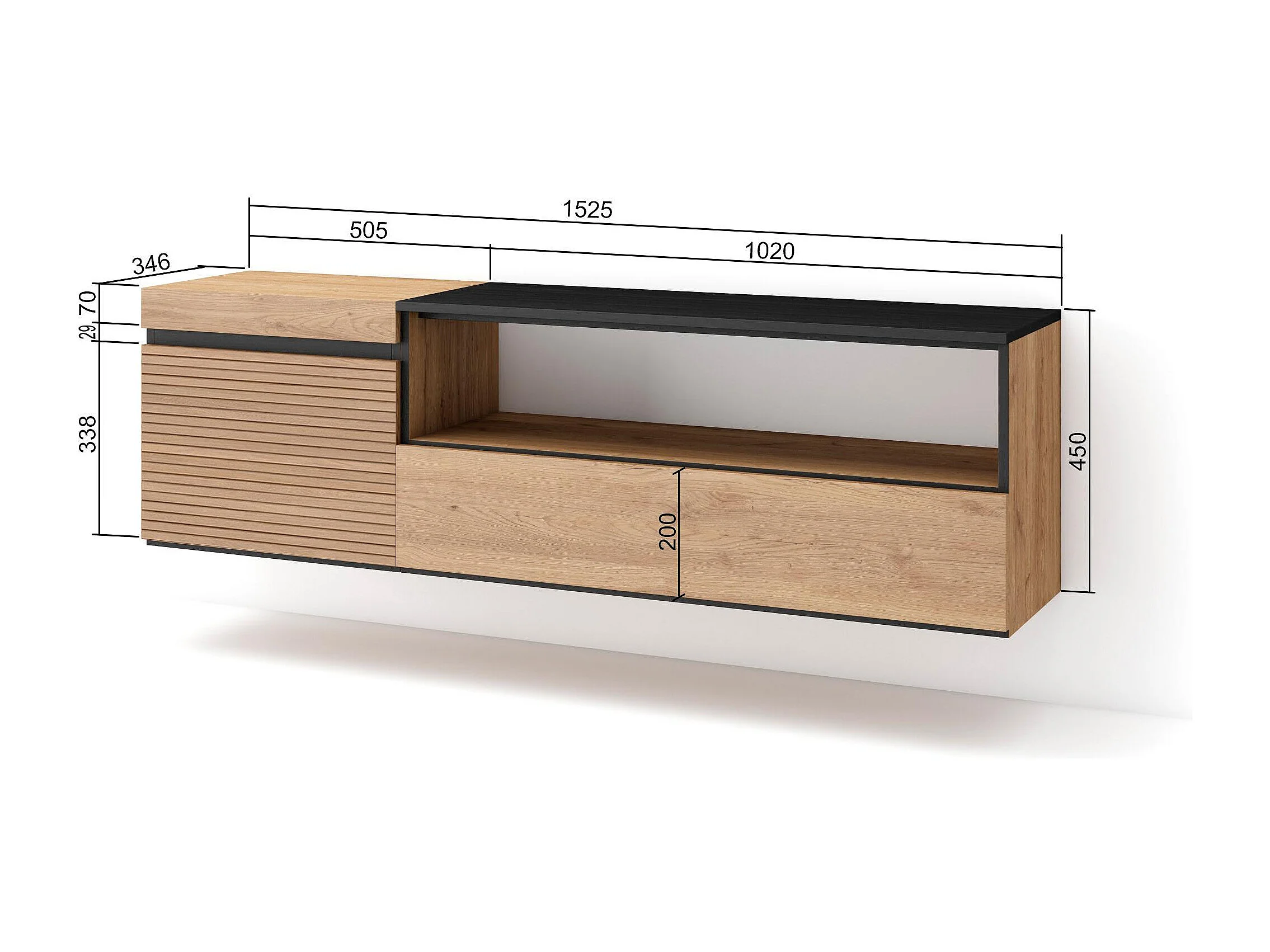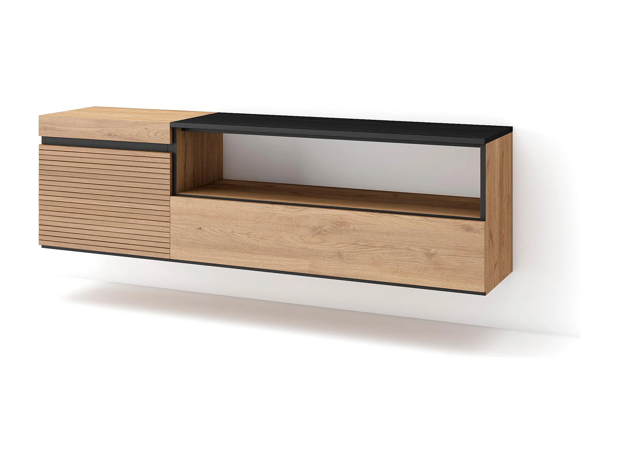 Meuble TV, Banc Télé, 150x35x45cm, Pour les TV jusqu'à 65", Suspendu, Mural, Chêne