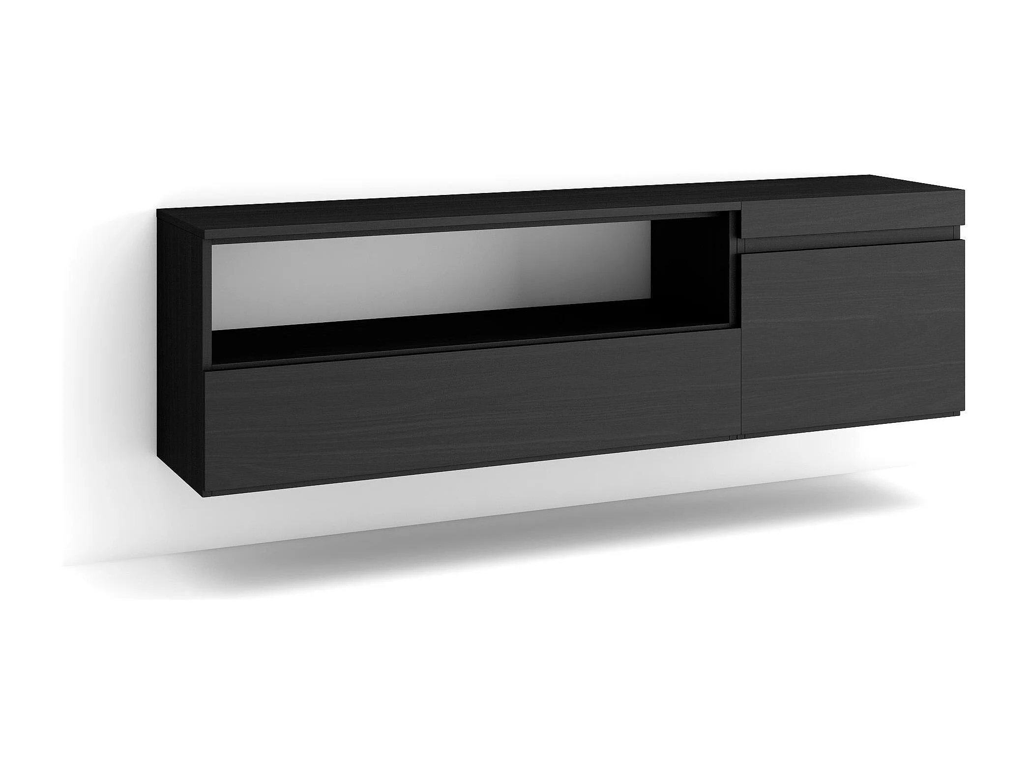 Meuble TV, Banc Télé, 150x35x45cm, Pour les TV jusqu'à 65", Suspendu, Mural, Noir