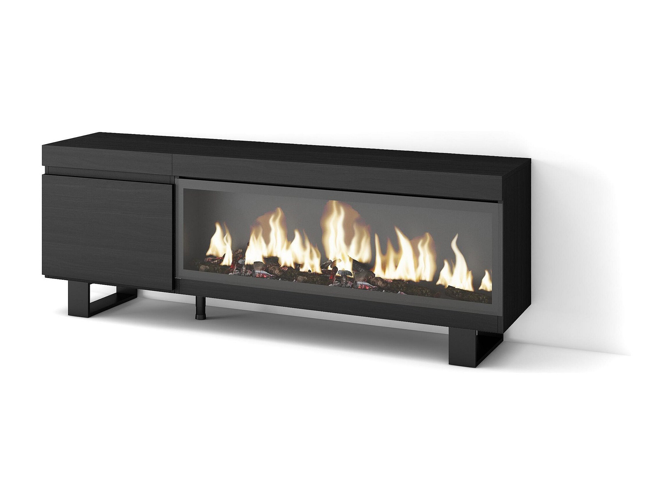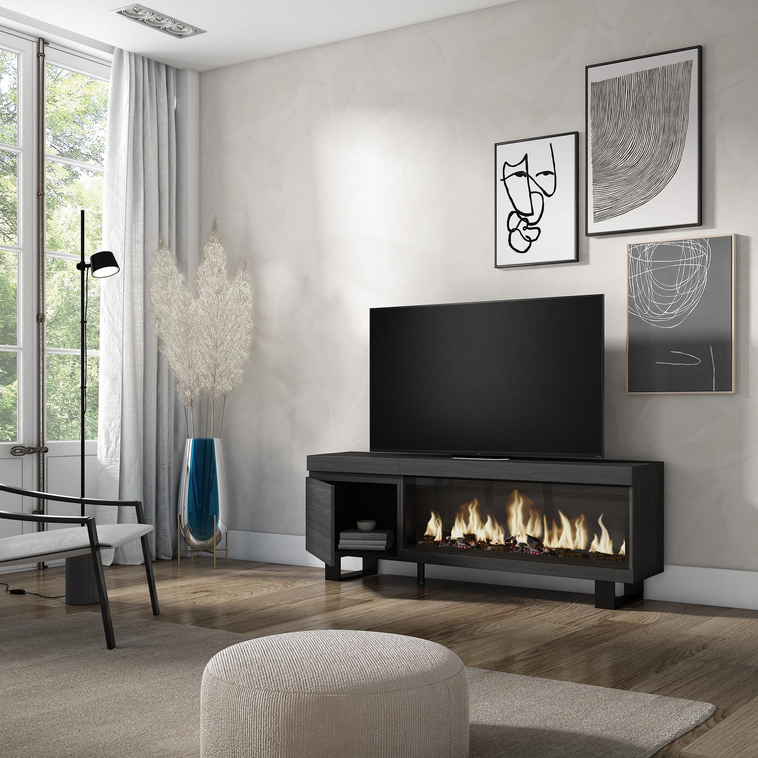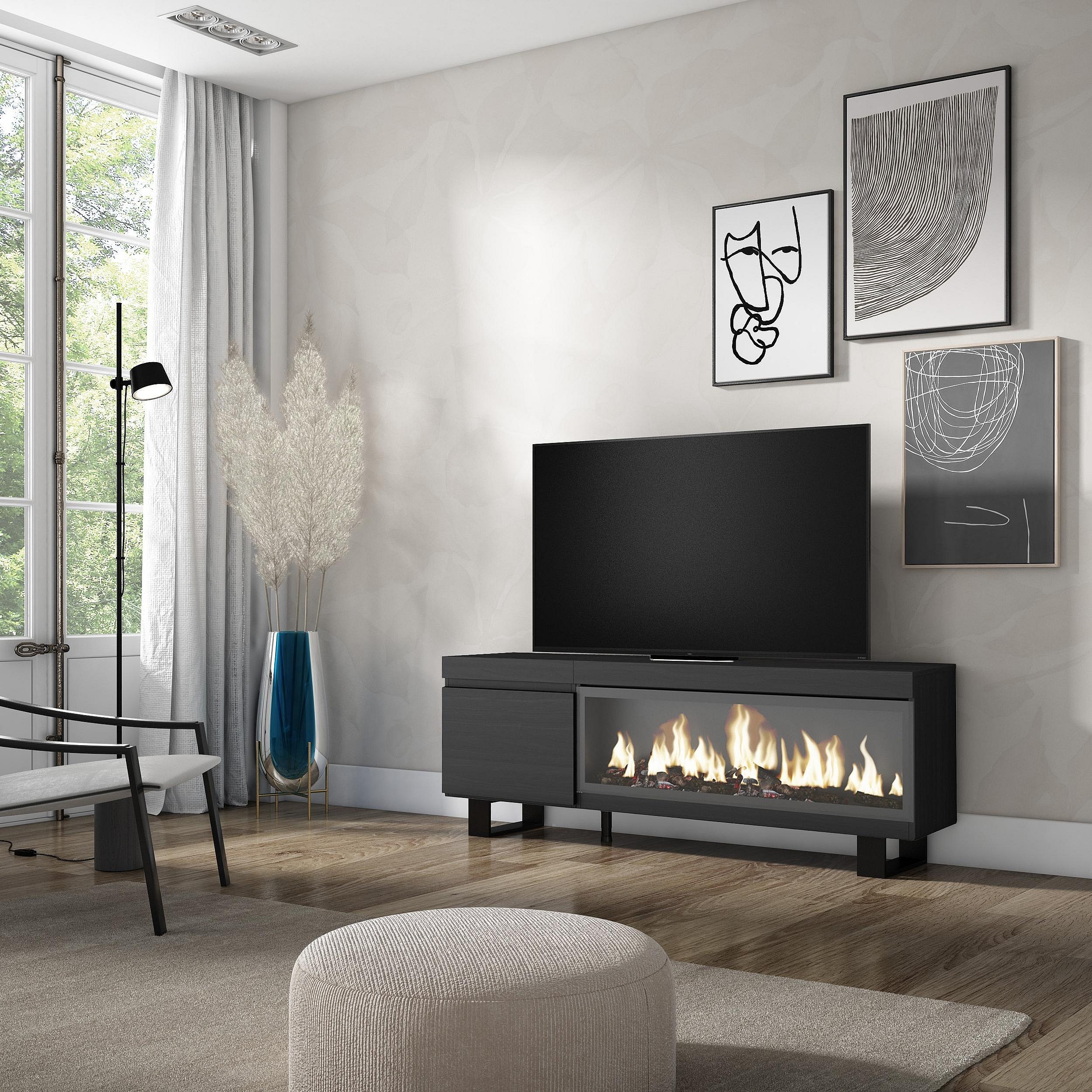 Meuble TV, Banc Télé, 158x35x45cm, Pour les TV jusqu'à 65", Cheminée électrique XXL, Noir
