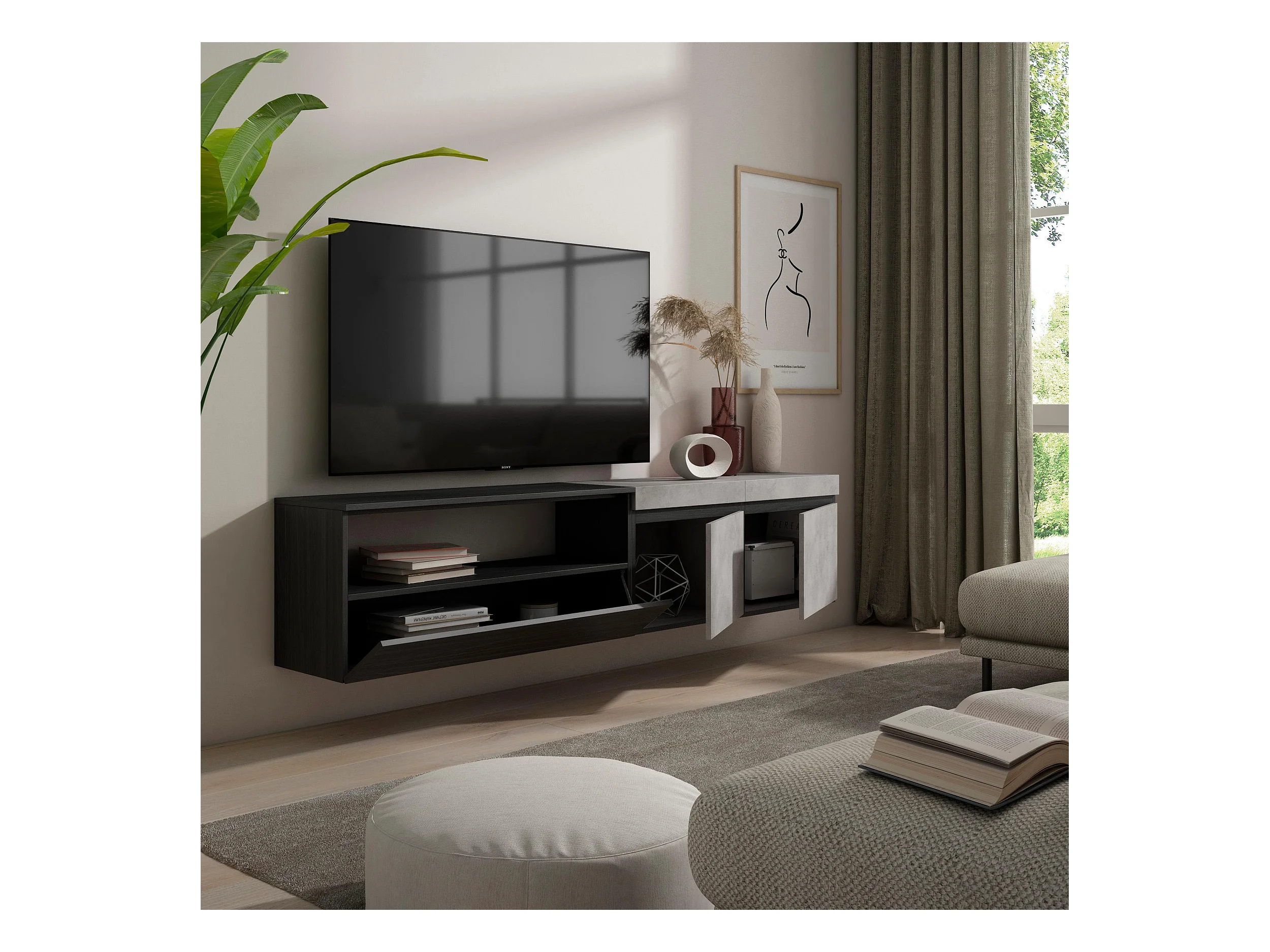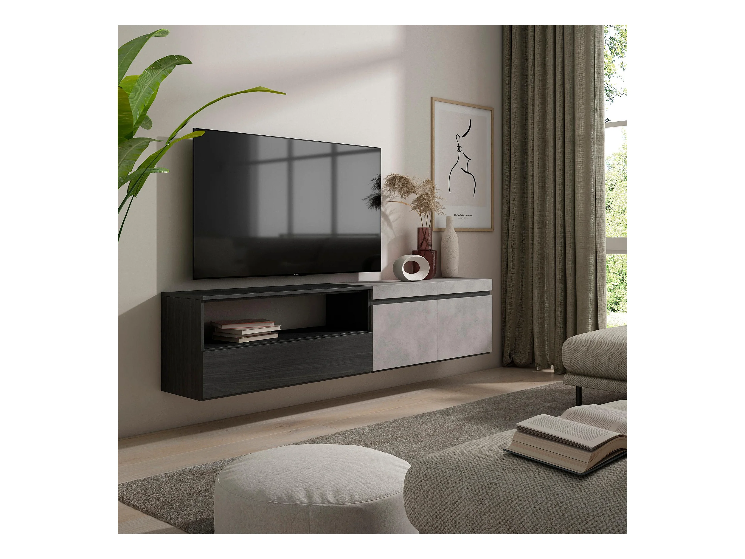 Meuble TV, Banc Télé, 200x35x45cm, Pour les TV jusqu'à 80", Suspendu, Mural, Ciment
